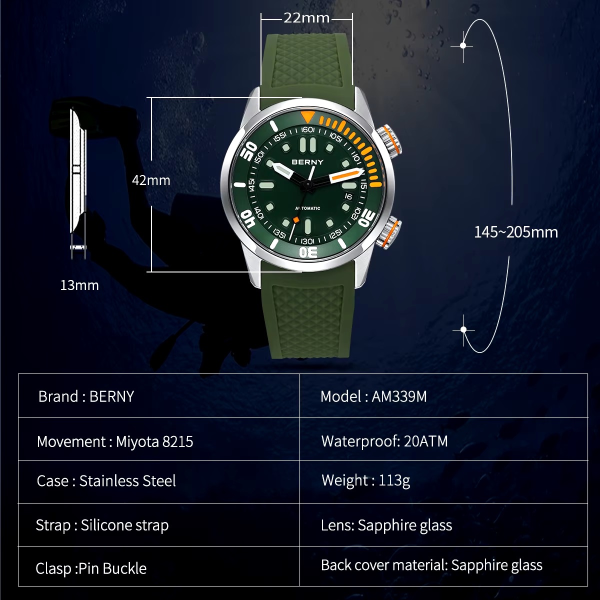 - Water Resistance Depth: 20Bar