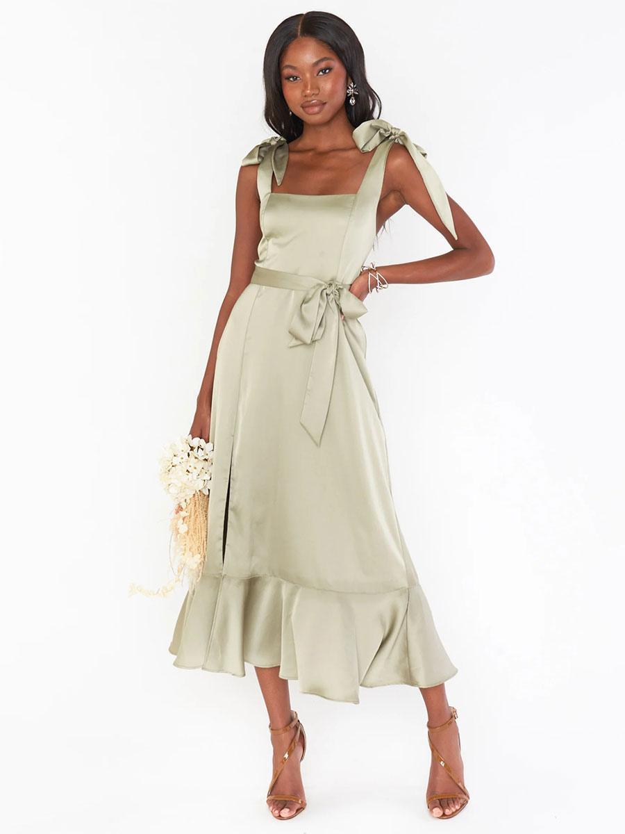 - Hemline/Train: Ankle-Length, Tea-Length