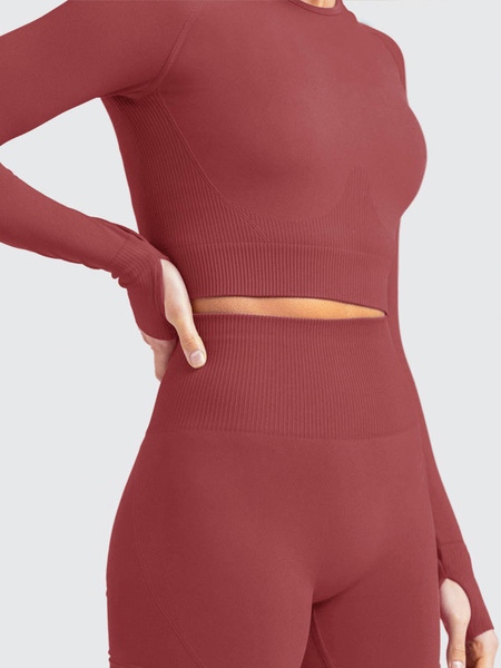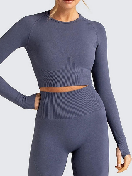 Activewear Yoga Nylon Pants Tops Sexy Workout Clothing Long Sleeves Stretchy 2 Piece Set