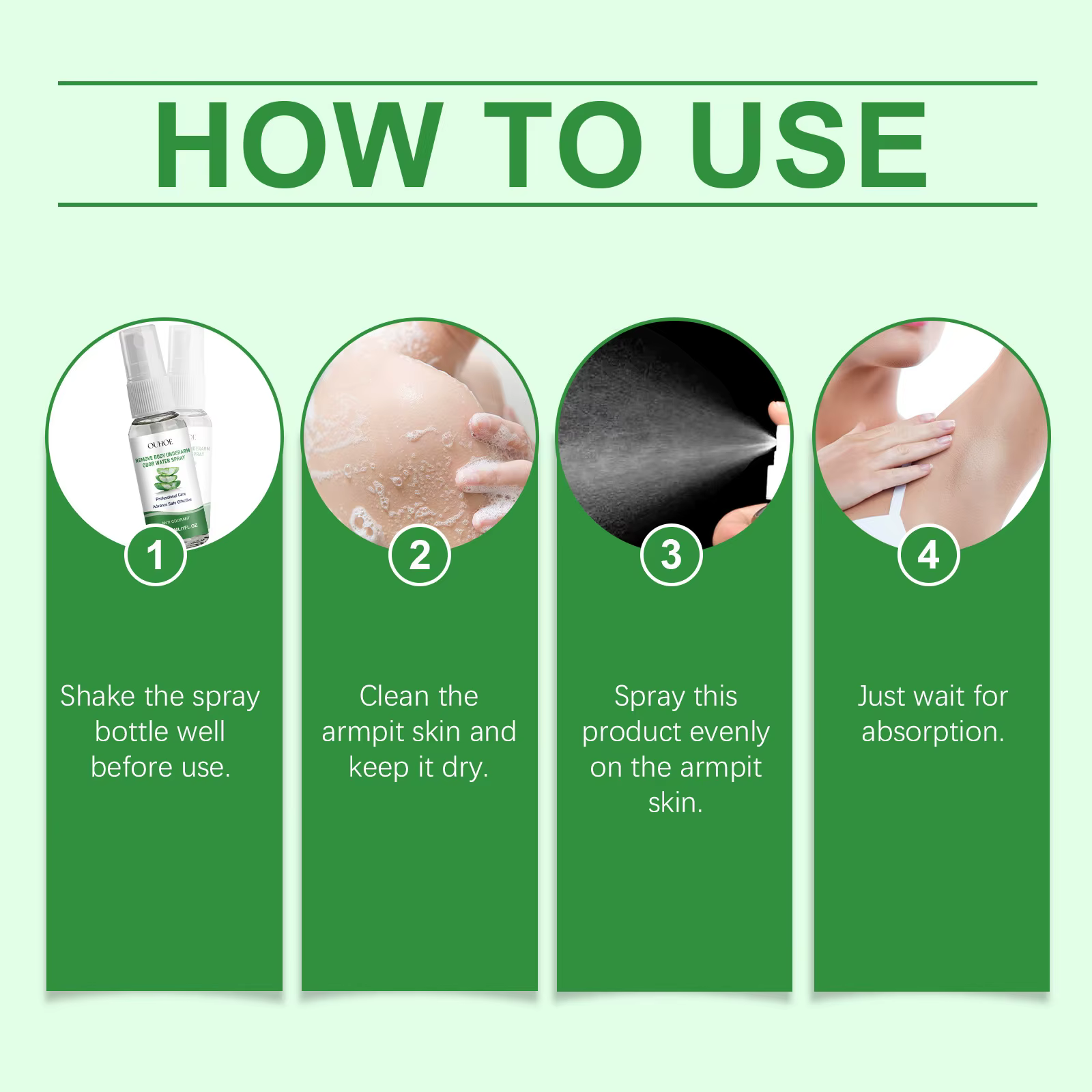 3. Spray this product evenly on the armpit skin.