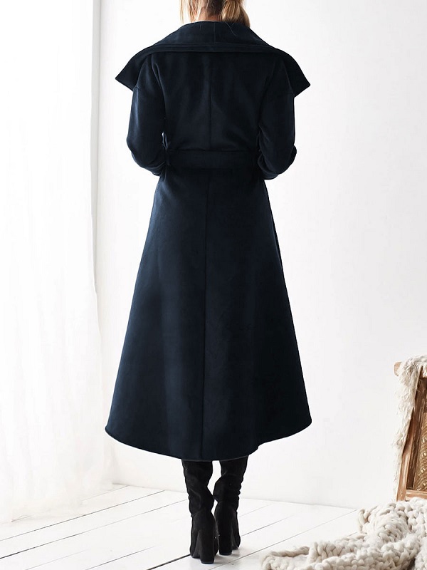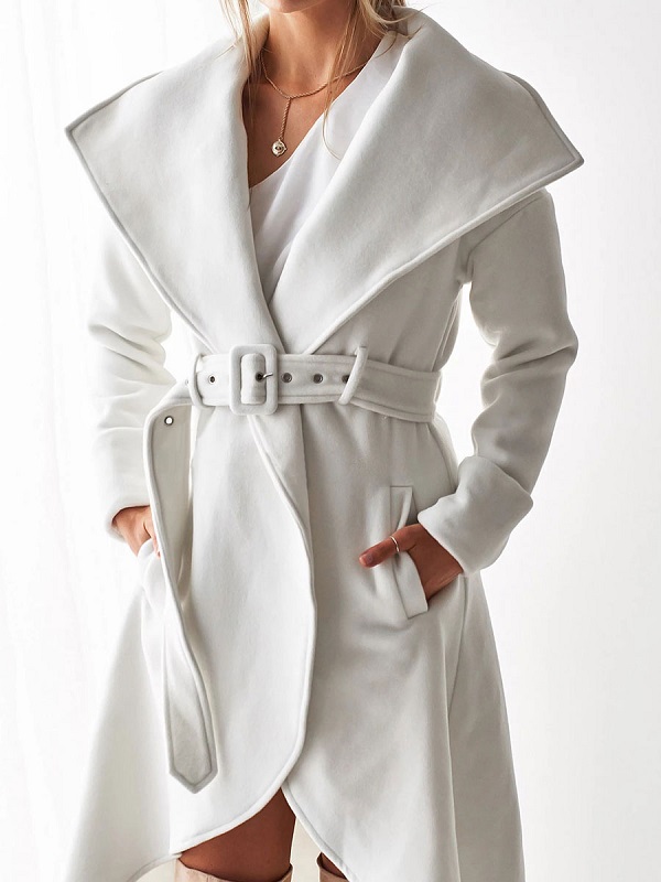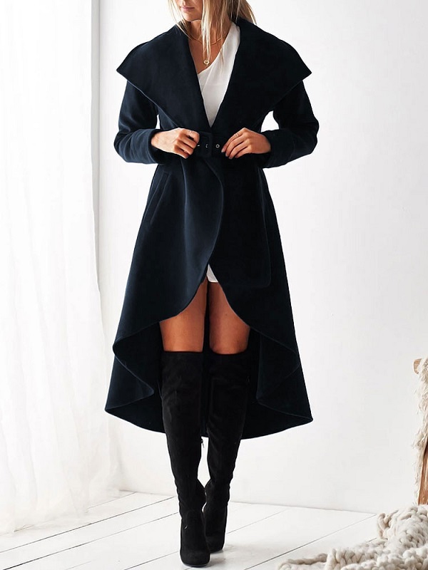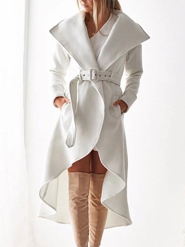 Belted Trench Coat Irregular Trim Wrap Coat