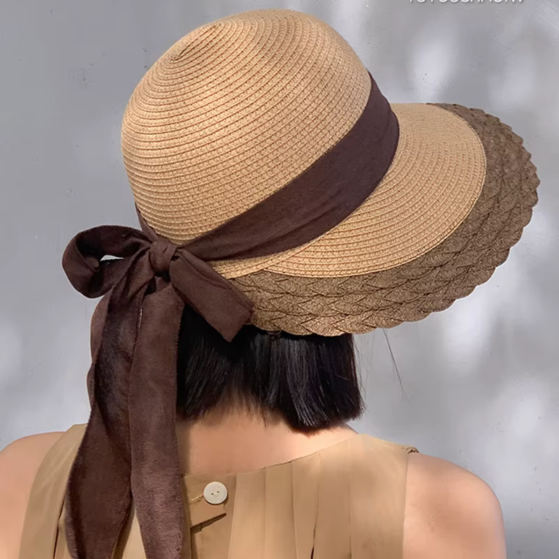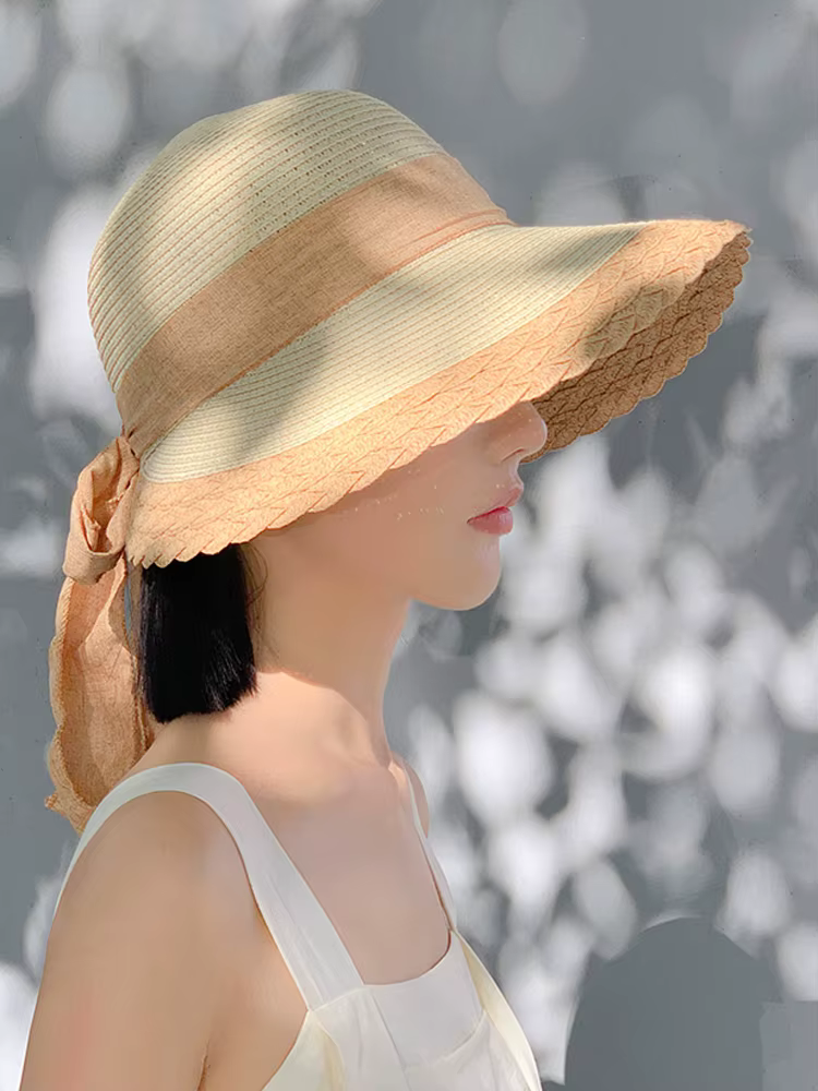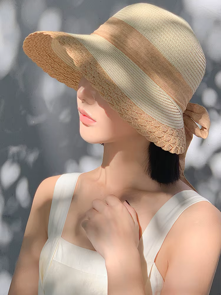 Bow Straw with Large Eaves for Sun Protection Sunshade Fashionable Hat