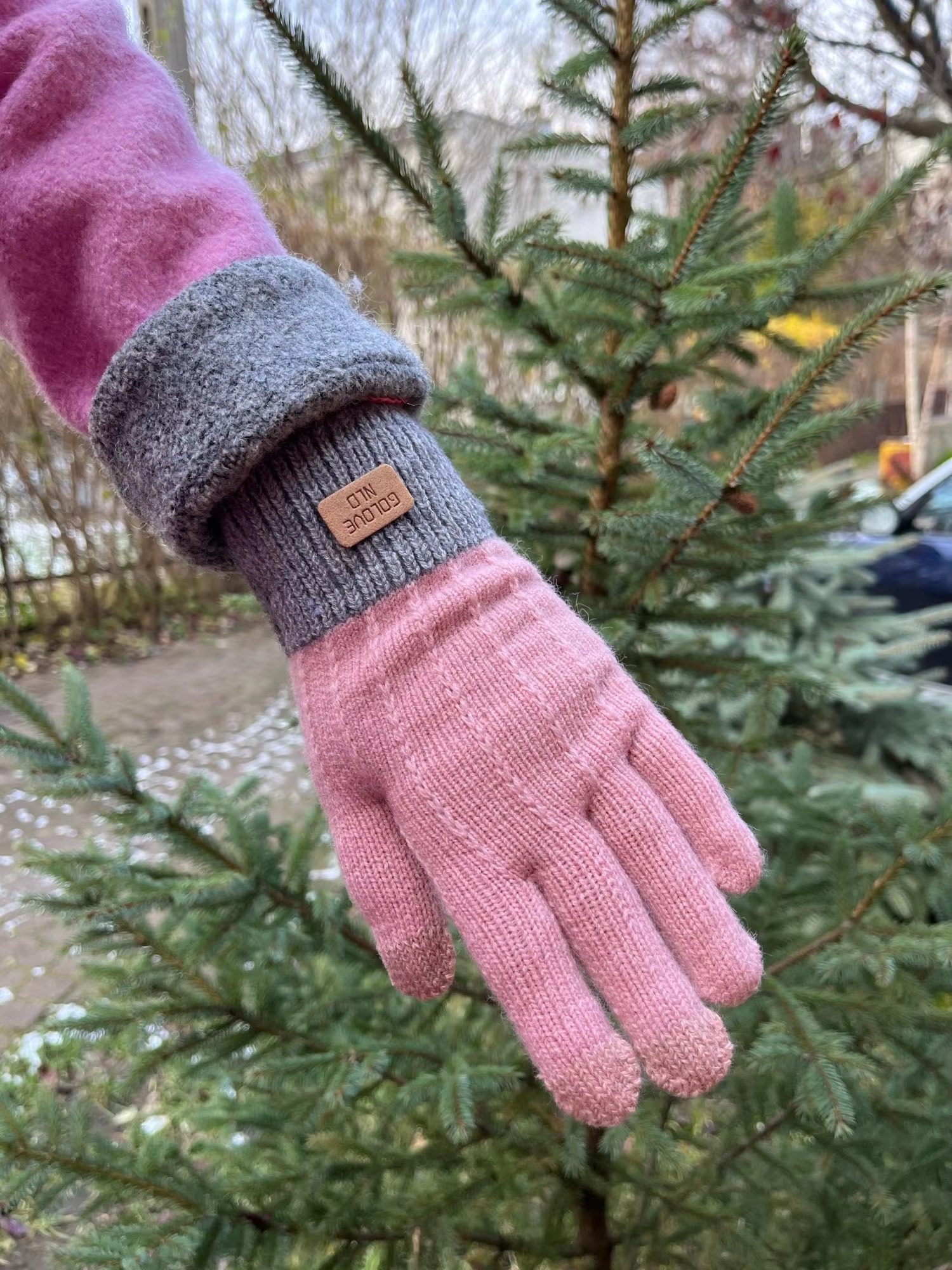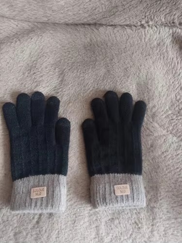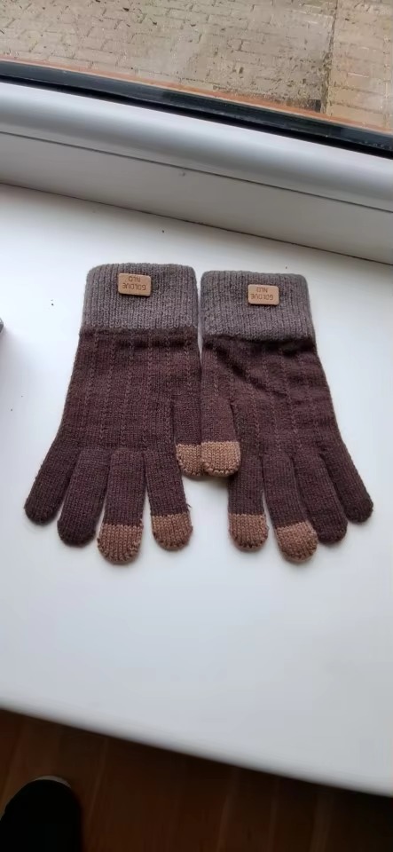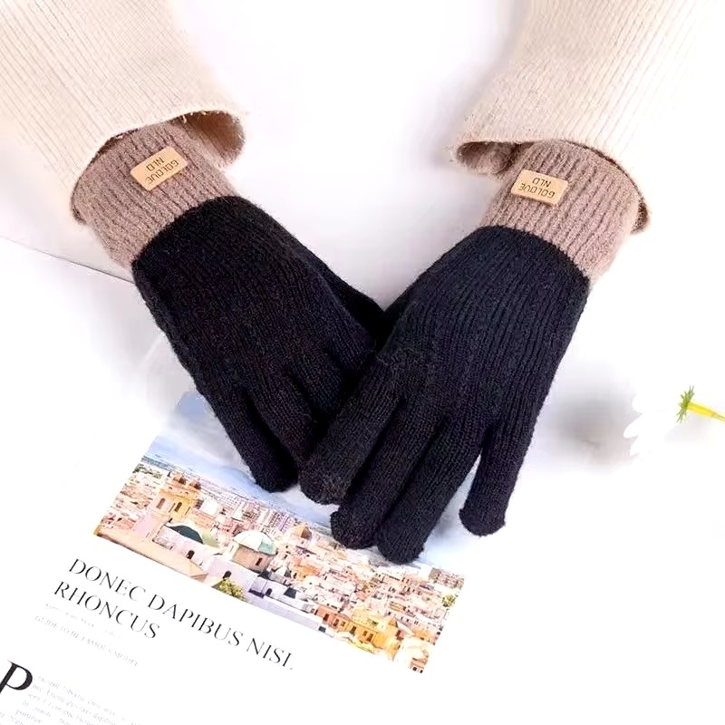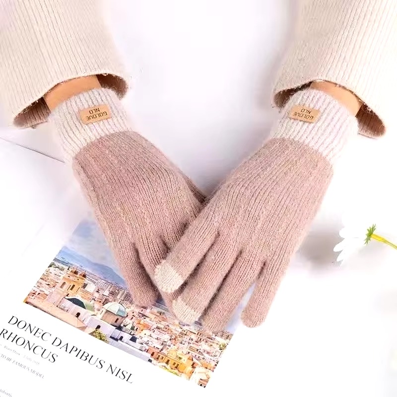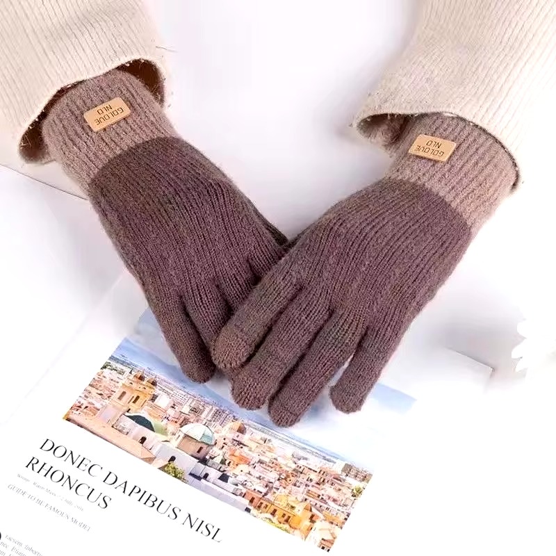 Cashmere knitted outdoor anti-freeze plus fleece thickened touch screen gloves