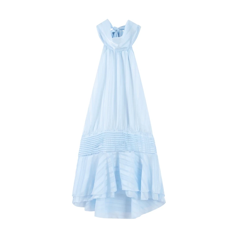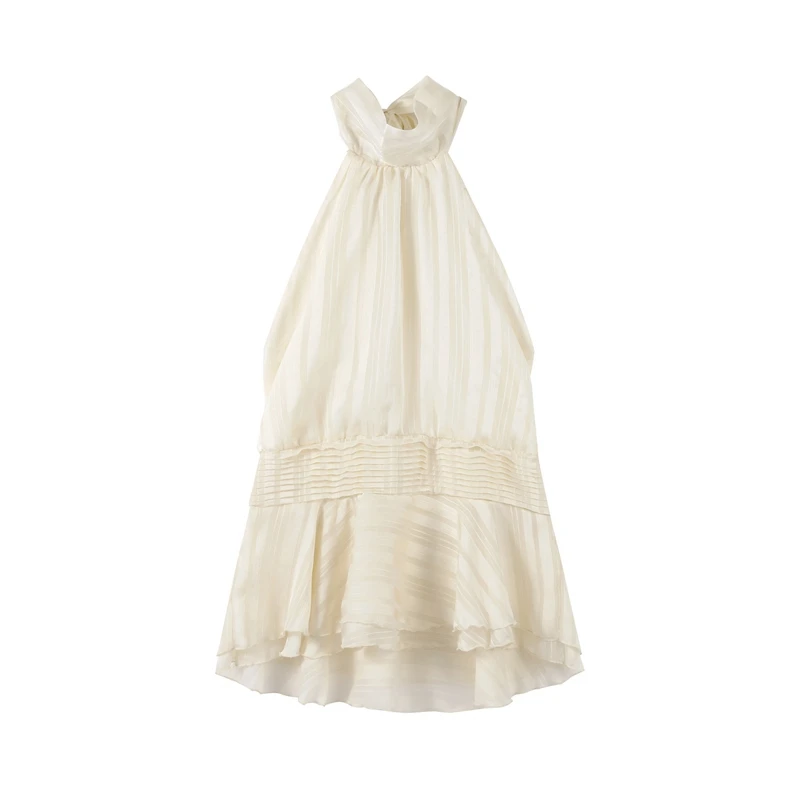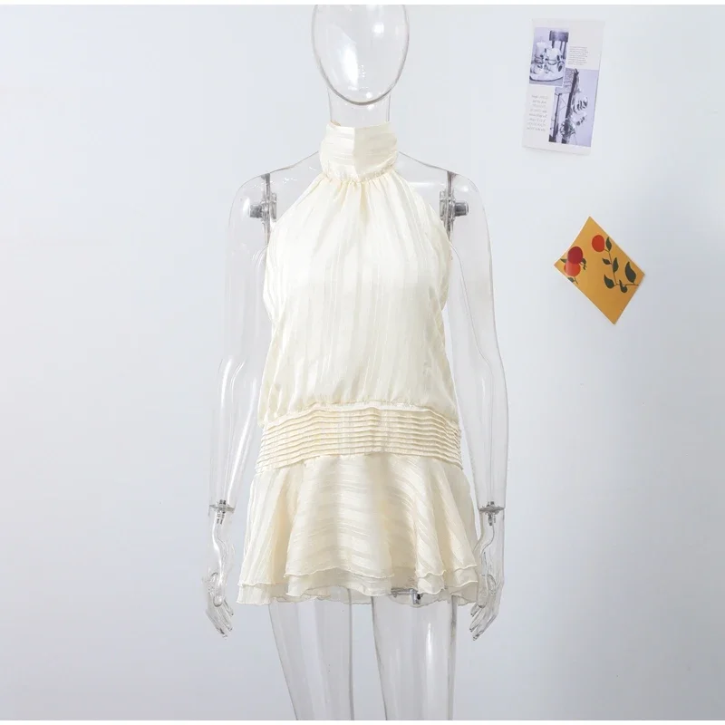 Casual Backless Lace Up Halter Ruffle Sleeveless Mini Dress