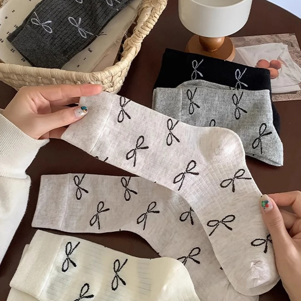 Casual Comfortable And Breathable Suitable Of Butterfly knot Outdoor Socks 5 pairs
