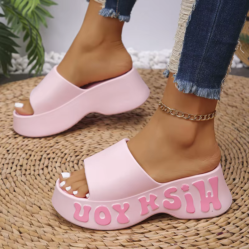Casual Fashion Print Wedge Platform Thick Bottom Cloud Slippers