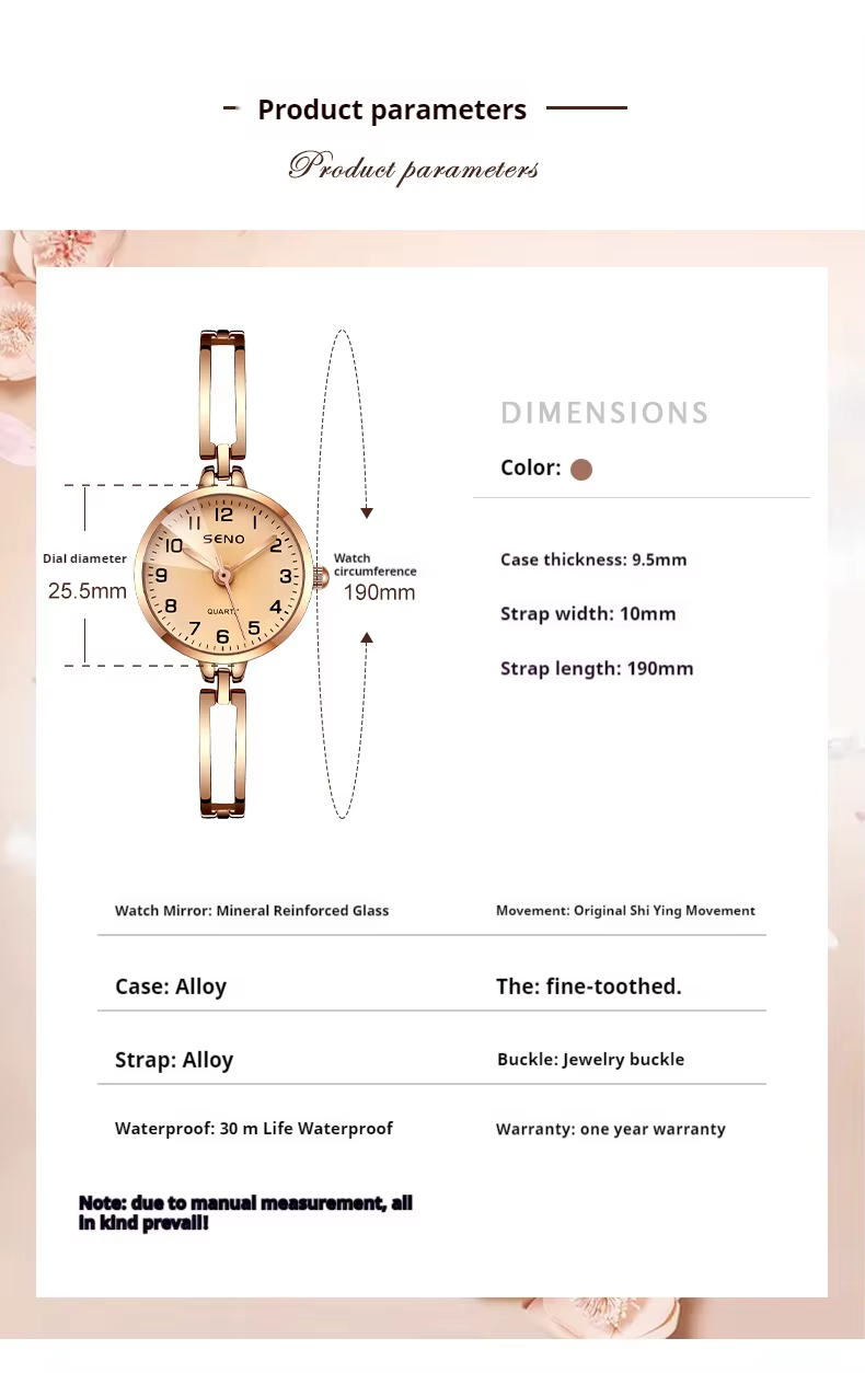 • Quartz Precision: Stay punctual with reliable quartz movement that ensures accurate timekeeping for the modern woman.