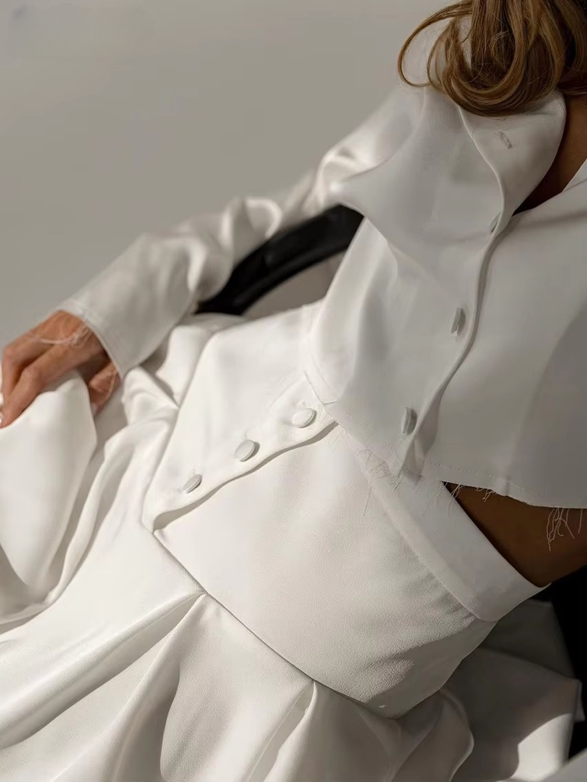 Casual Loose Crop Shirt With High Waist Pleated Skirt 2 Pieces Set