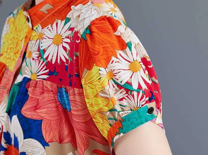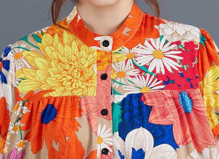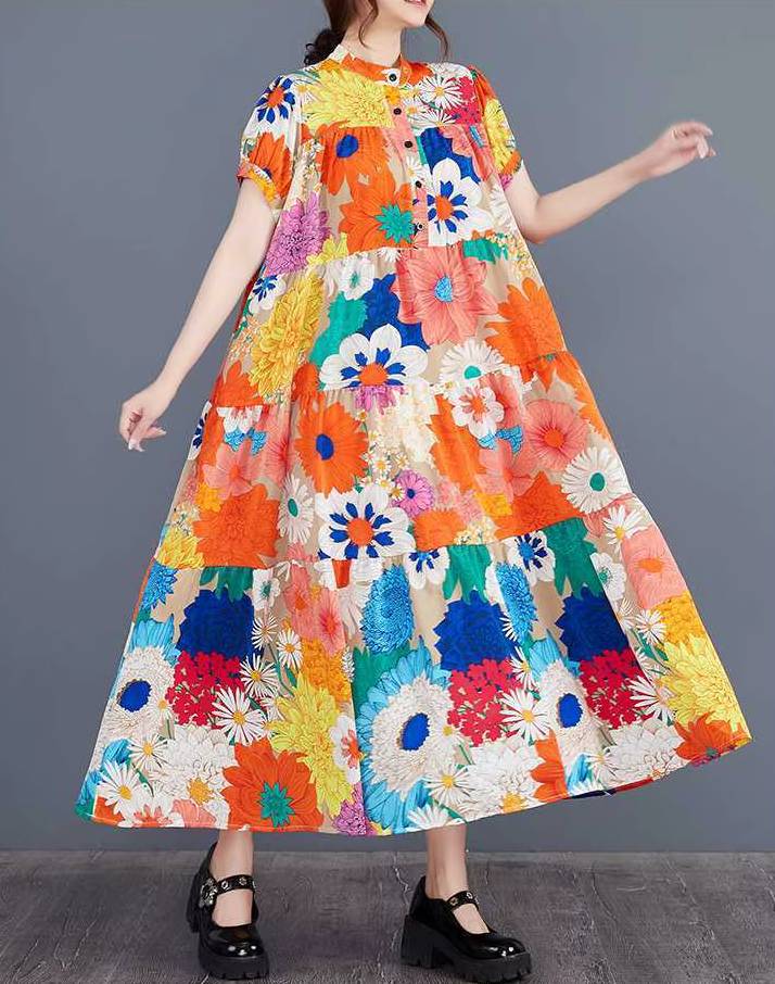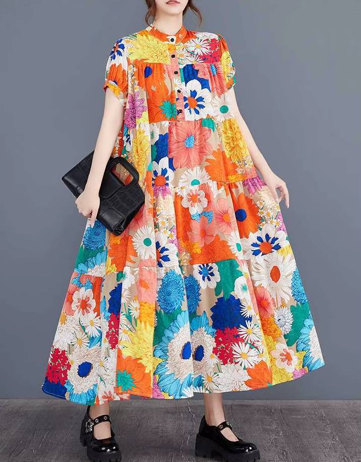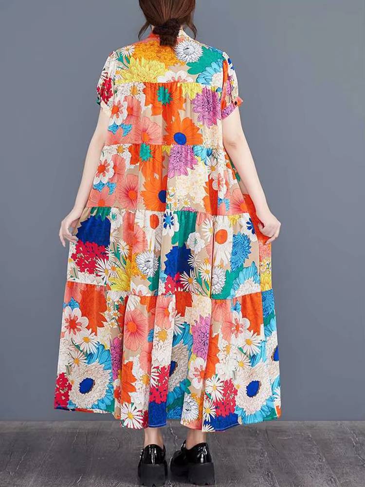 Casual Printed O-Neck Short Sleeved Loose Big Code Midi Dress