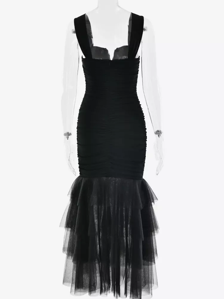 - Design : Layered, Backless, Open Shoulder