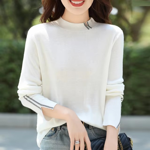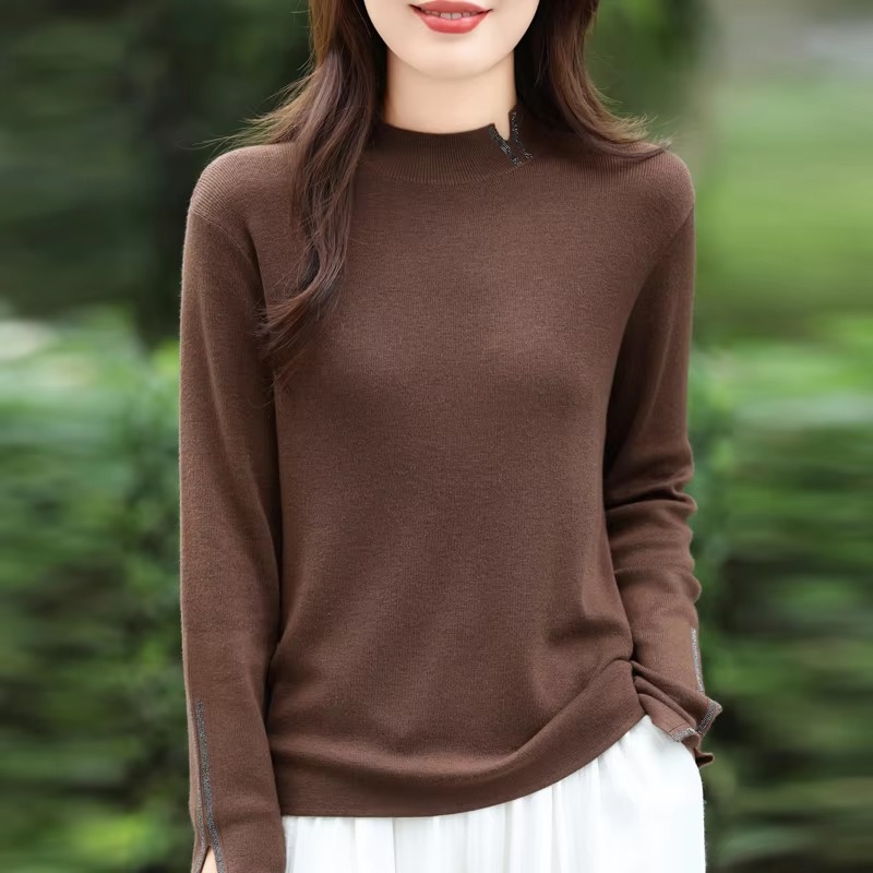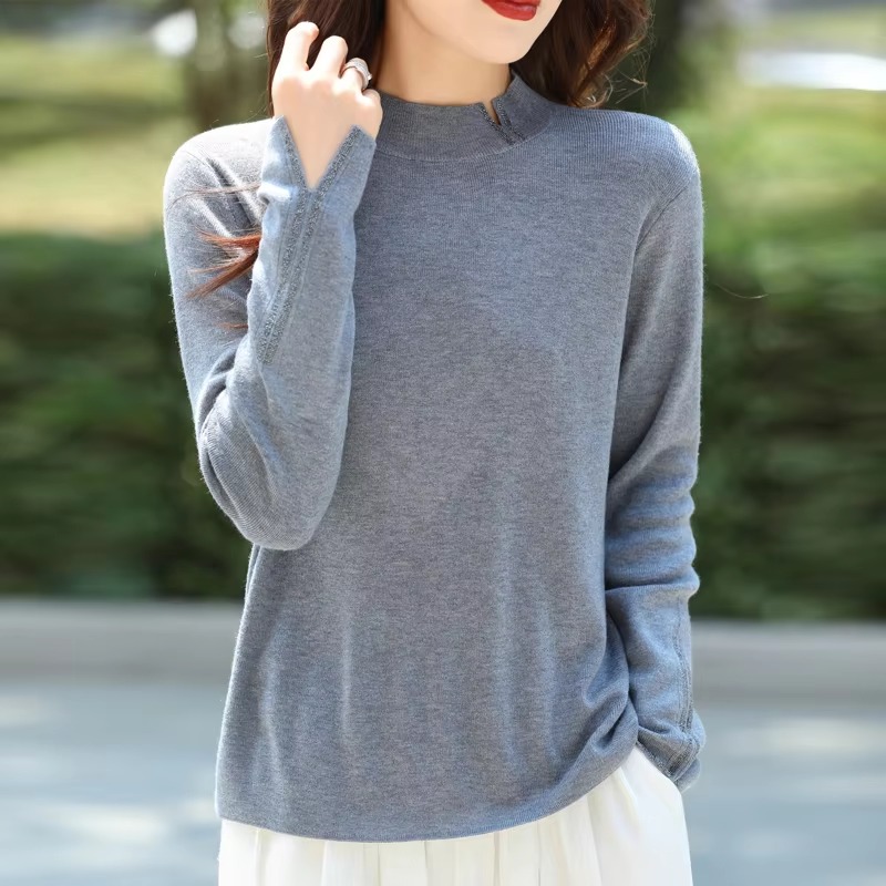 Casual Solid Mock Neck pullover Full Sleeve knitted Street wear cashmere sweater