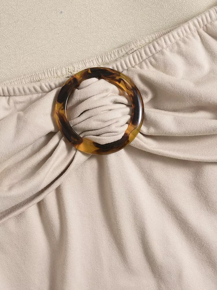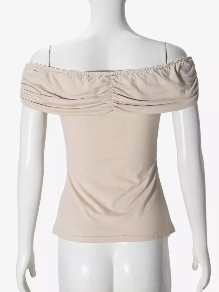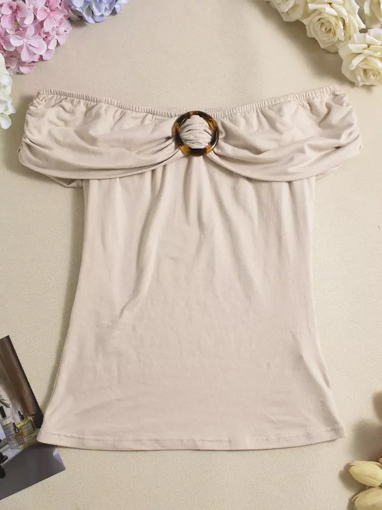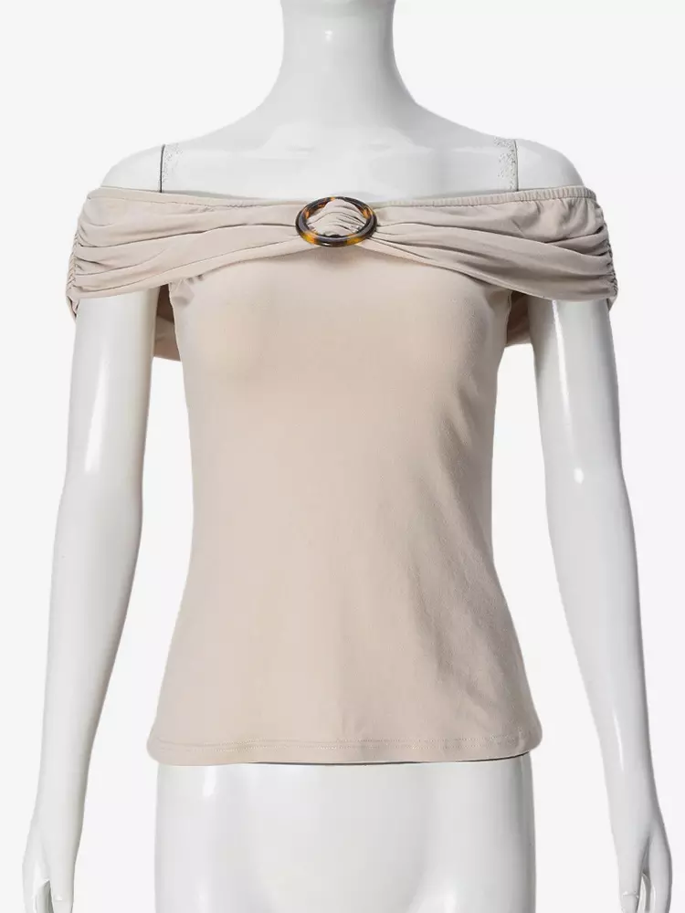 Casual With Circular Pleated Buckle Street Wear Off-Shoulder Top