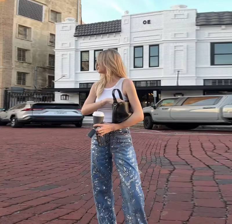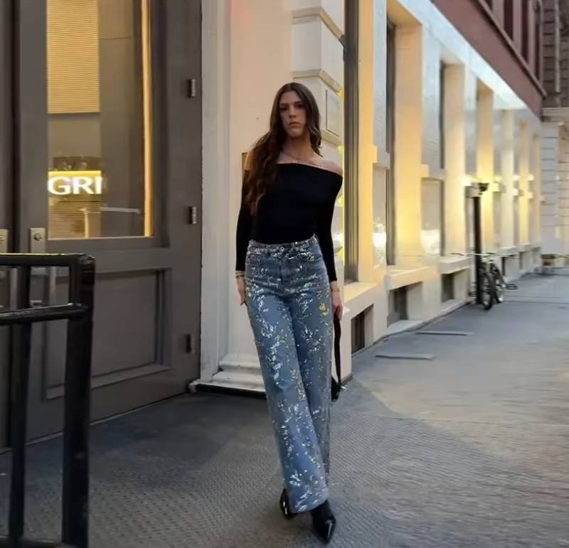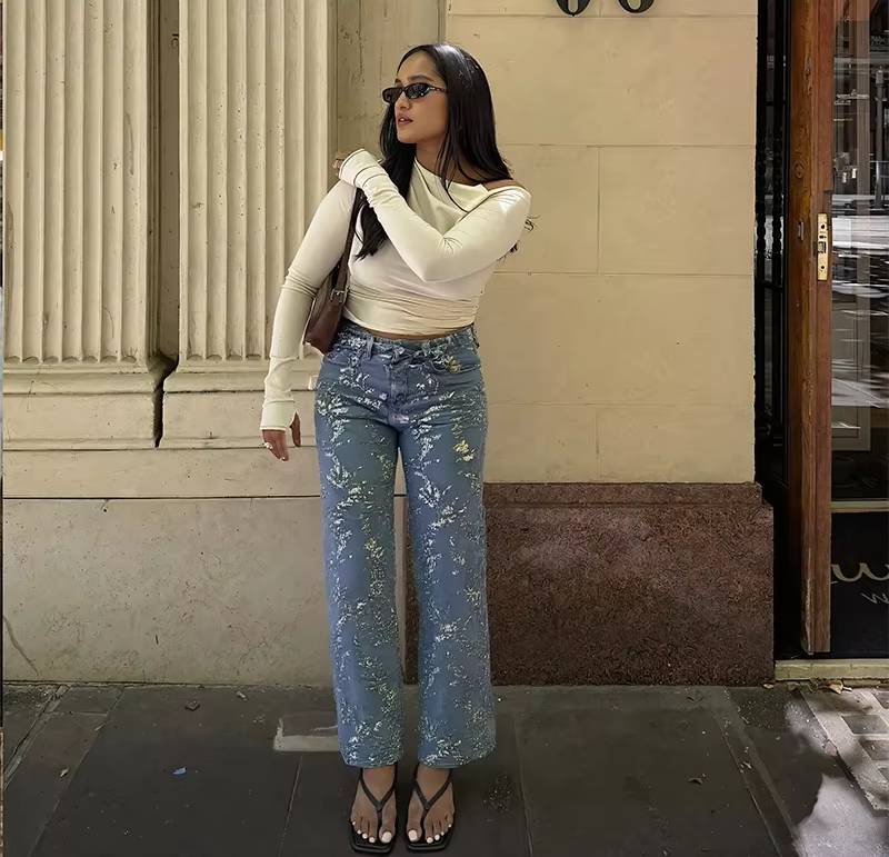 - Jeans Style : Wide leg pants