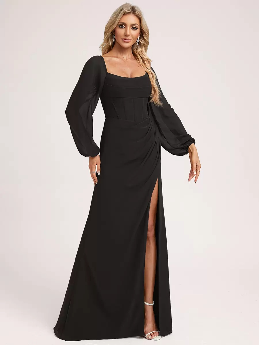 - Hemline/Train: Floor-Length