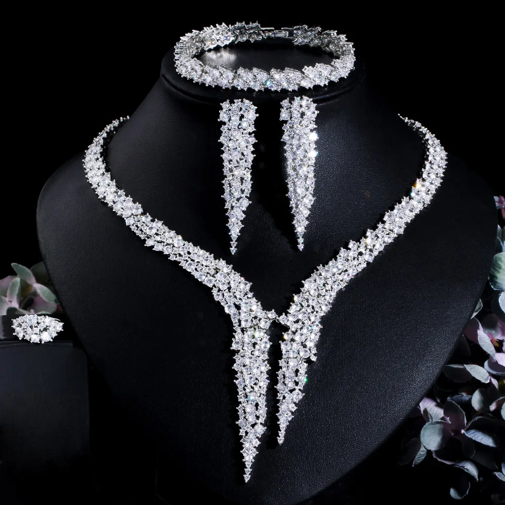 Classic Zircon Geometric Lab Diamond Wedding Ring Earring Necklace Bracelet Jewelry Set