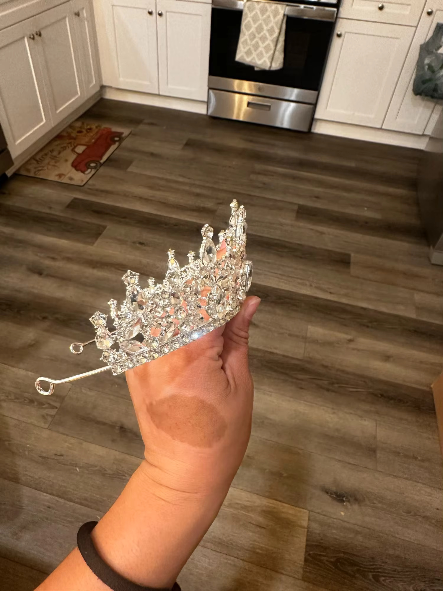 - Plated: Vintage Black Rhinestone Pageant Crown