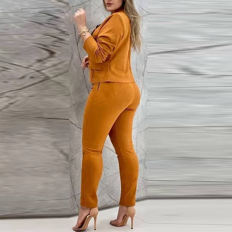 Elegant Button Stand Collar Short Tops Skinny Pencil Pants 2 Piece Set