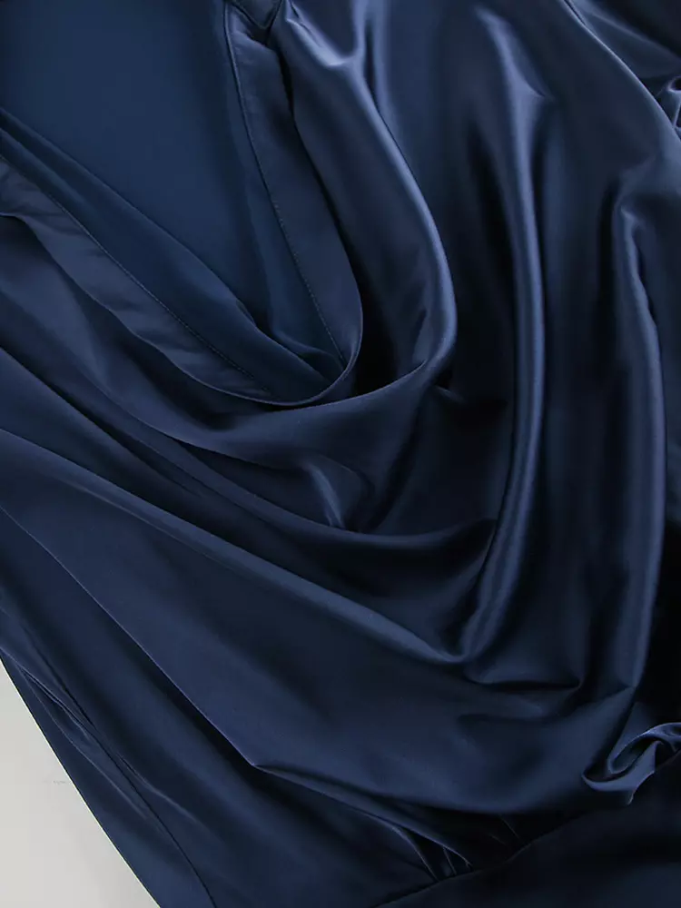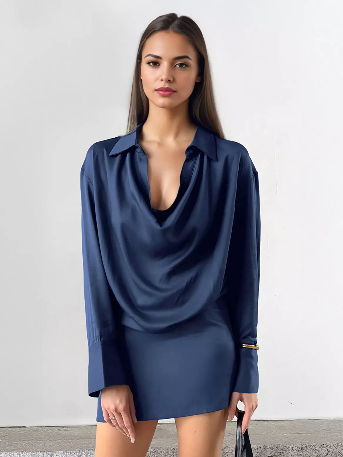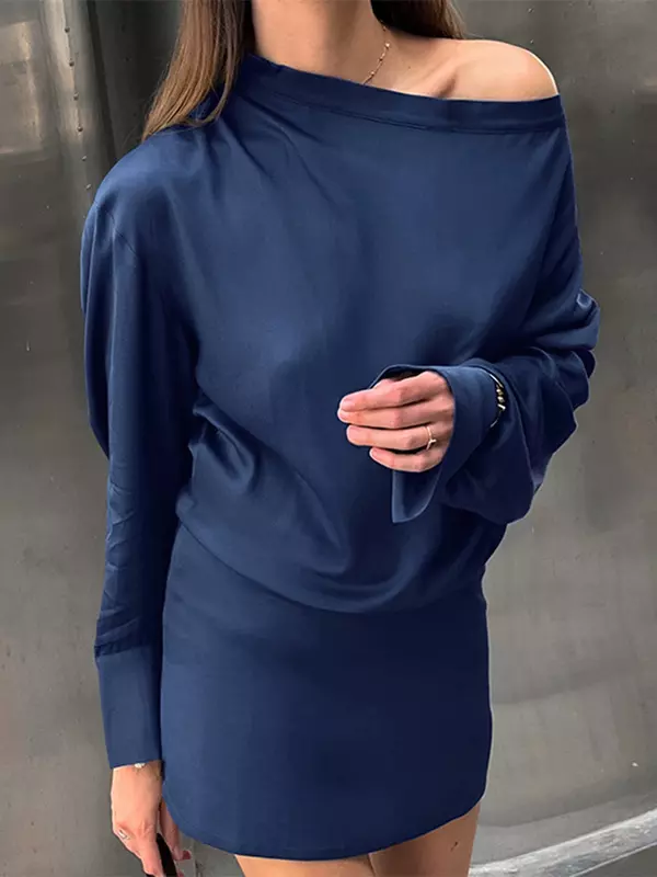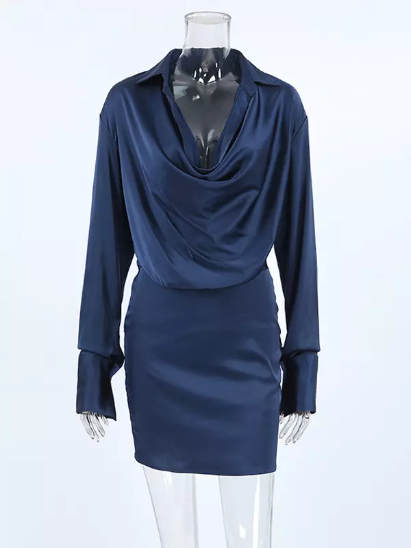 Elegant Cowl Pleated Solid Color Neck Long Sleeves Mini Dress
