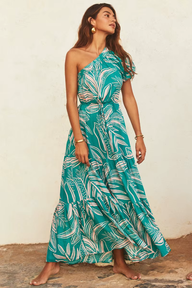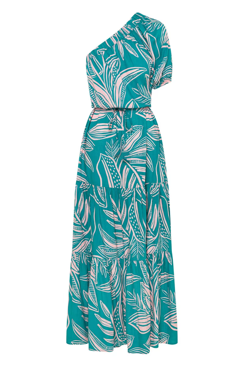 Elegant Floral Print Diagonal Shoulder Beach Style Long Maxi Dress