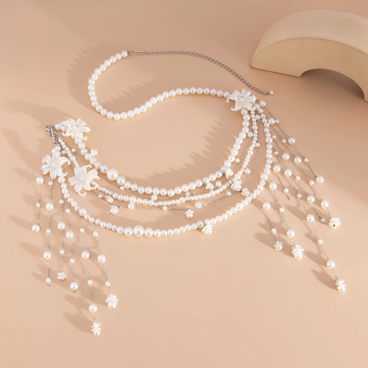 Elegant Imitation Pearl Long Tassel Waist Beads Decoration Chain Dress Belly Belt
