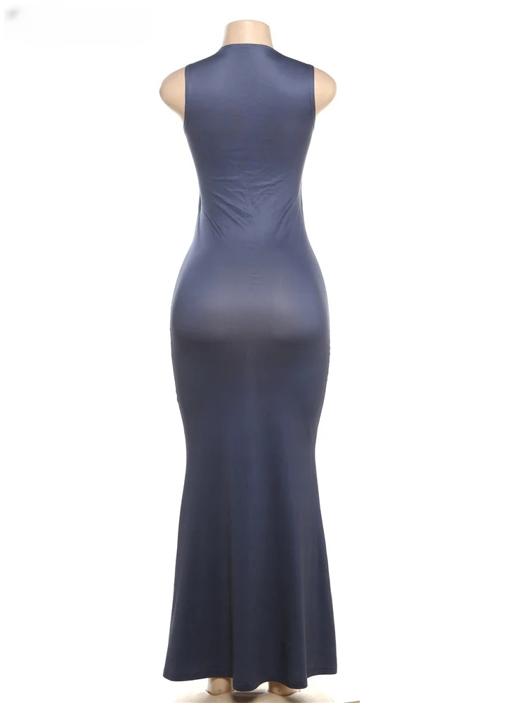 Elegant Metal Buckle Ankle-Length Tight Stretch Long Bodycon Dress
