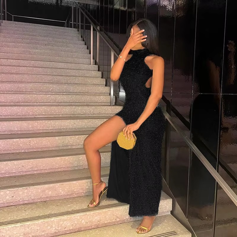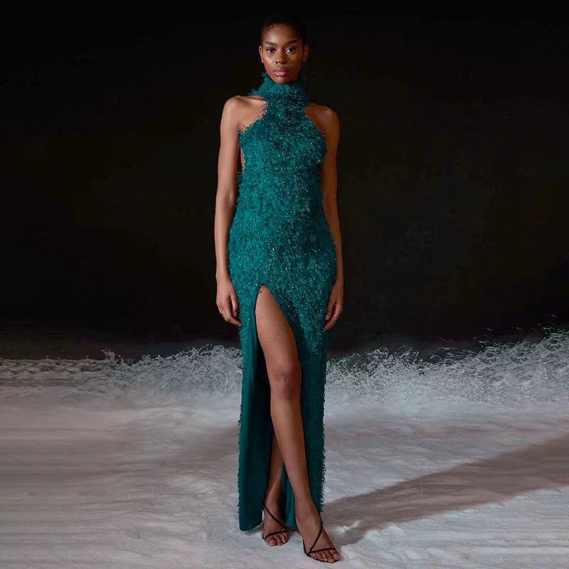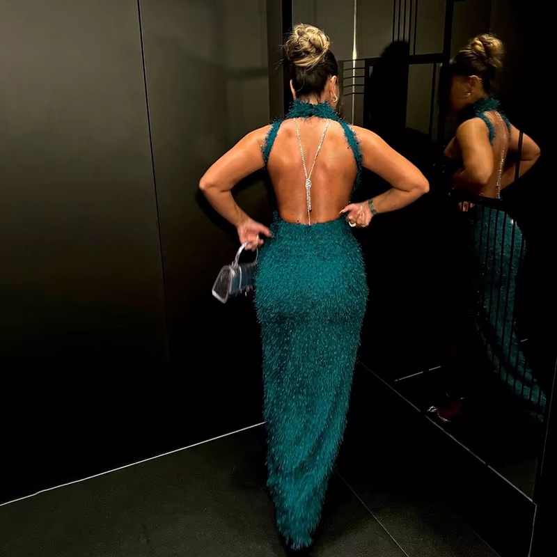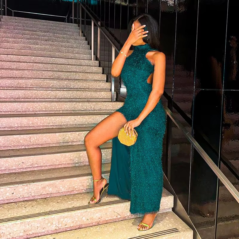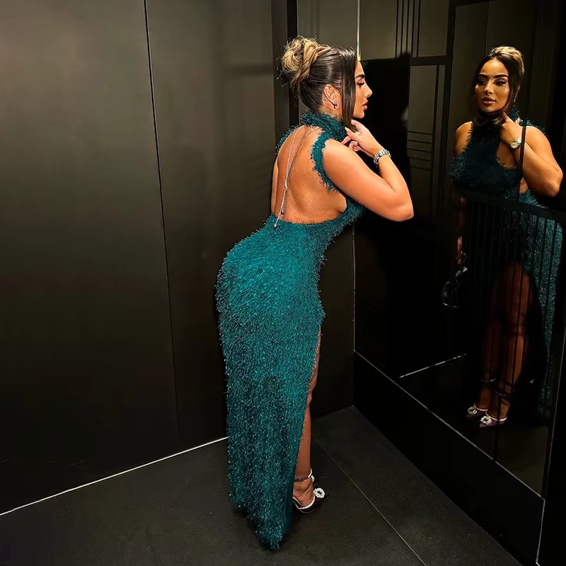 Elegant Off Shoulder High Slit Party Backless Maxi Dress