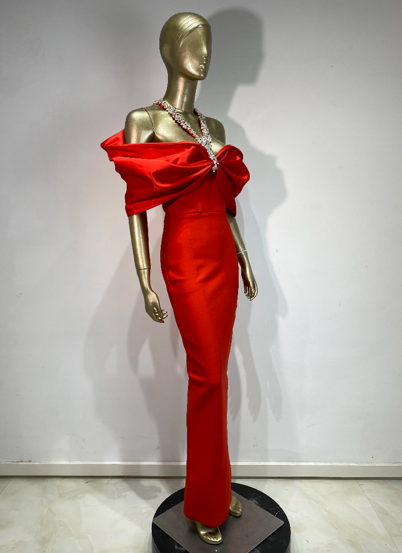 - Neckline: Slash Neck