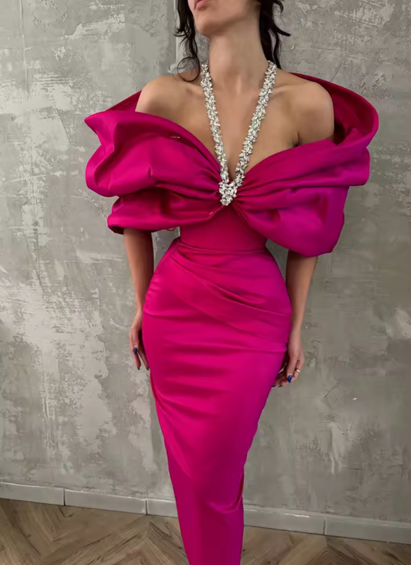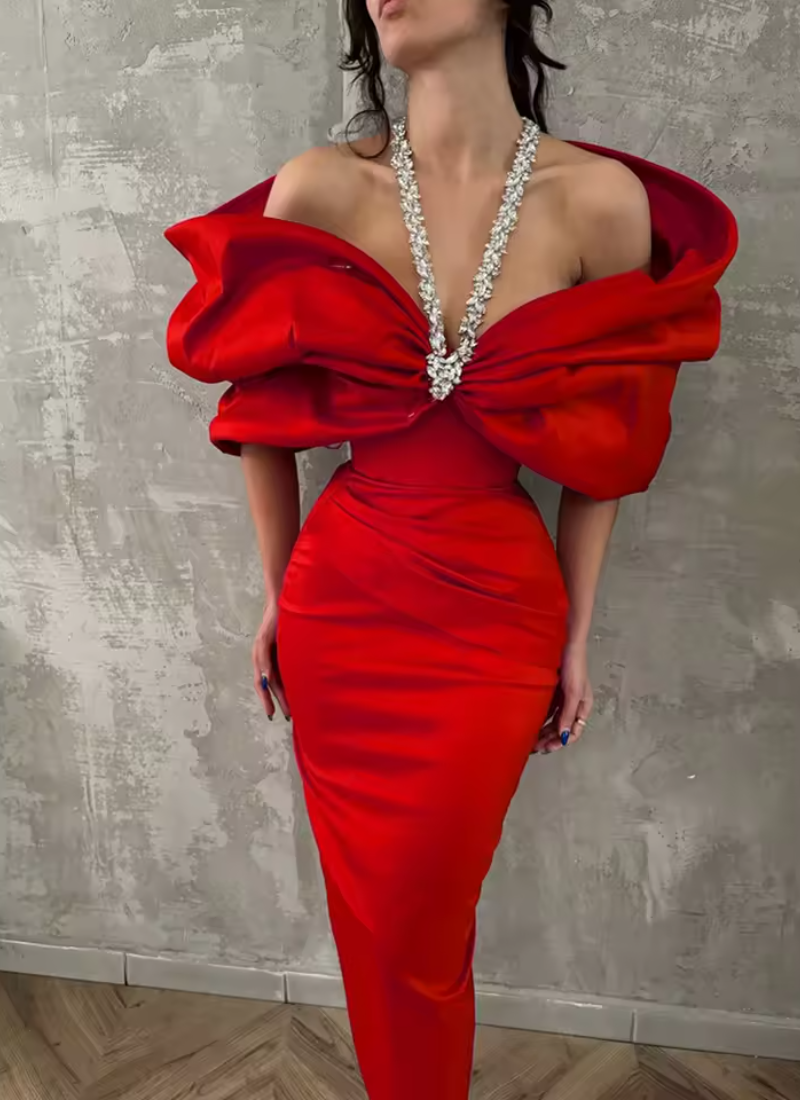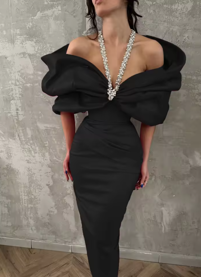 • Neckline: Slash Neck