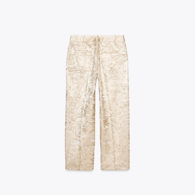 Elegant Pearlescent Sleeveless Tube Pleated Tops Straight Pant 2 Piece Suit