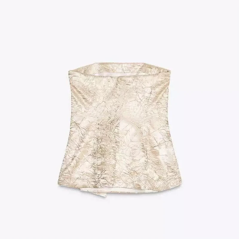 Elegant Pearlescent Sleeveless Tube Pleated Tops Straight Pant 2 Piece Suit