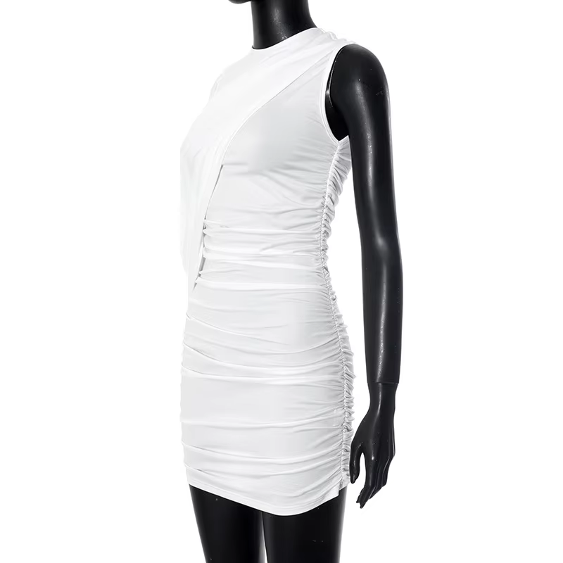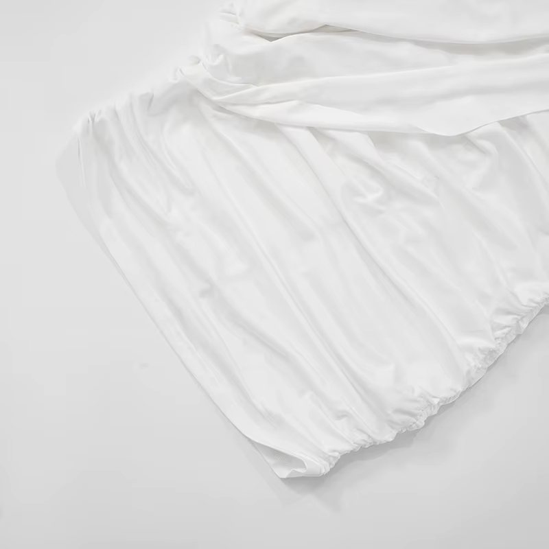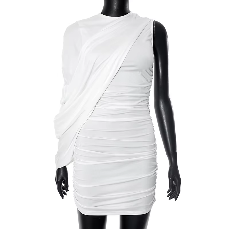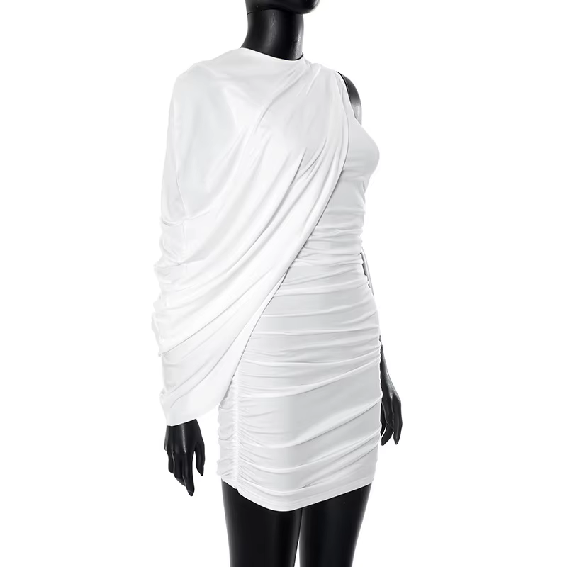 Elegant Pleated O-Neck Asymmetric Single Sleeve One-Shoulder Body-Shaping Mini Dresses