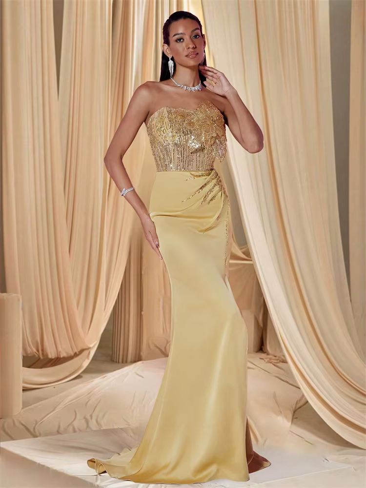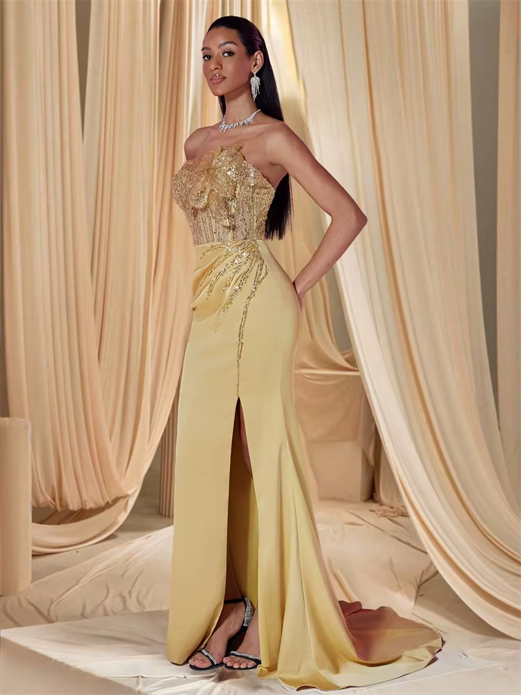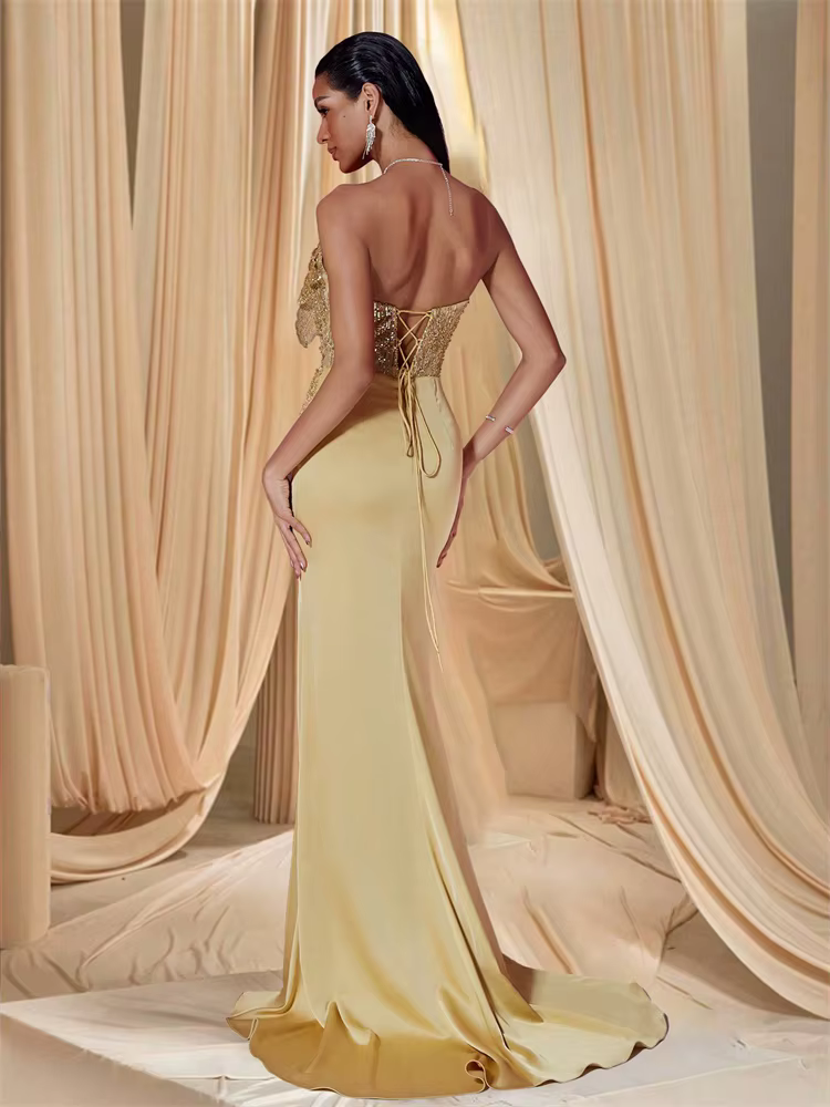 Elegant Sequins Split Floor-Length Sequin sleeveless Flower Gowns