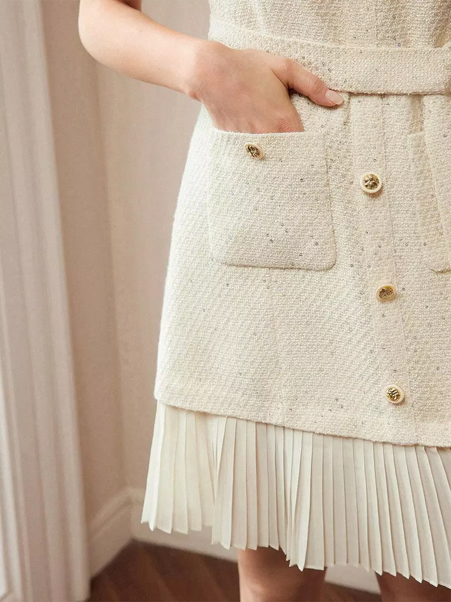 - Embellishment : Sash, Pleated, Buttons