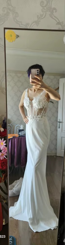 Elegant Straps Mermaid Lace Pearls Backless V Neck Sleeveless Formal Party Wedding Maxi Dresses