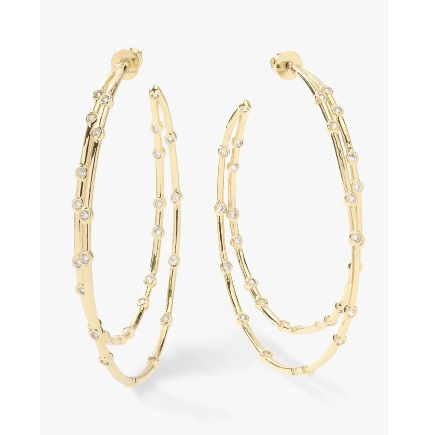Elegant Wholesale High Quality Geometric Paved Sparking  Double Circle Big Size Hoop Earring