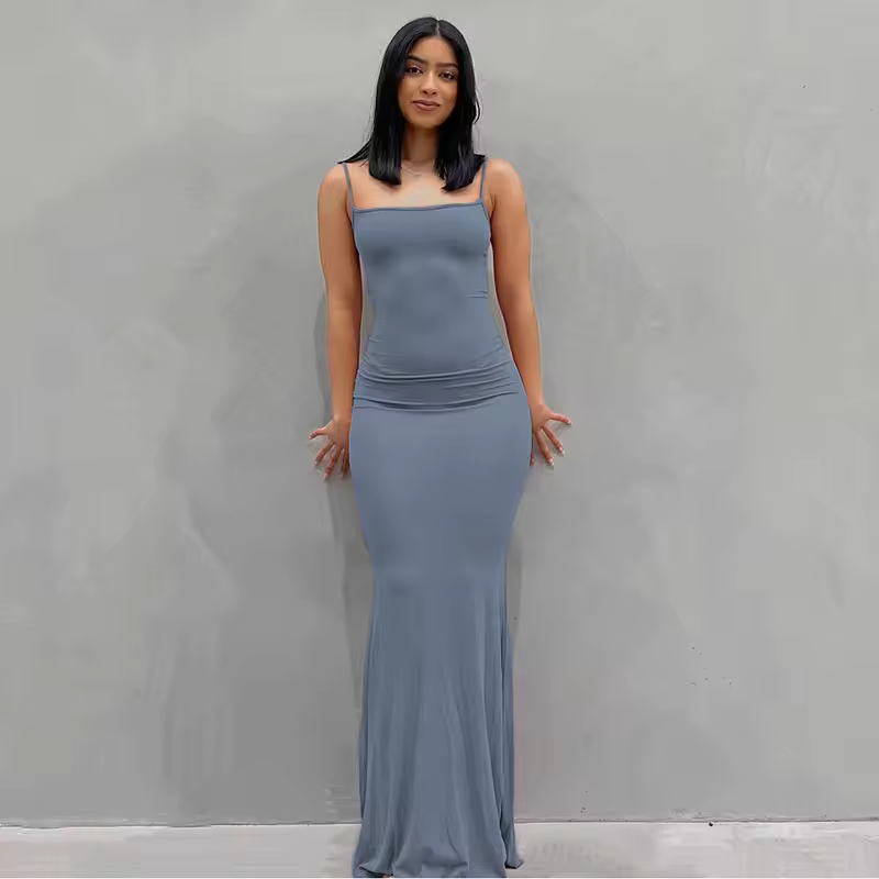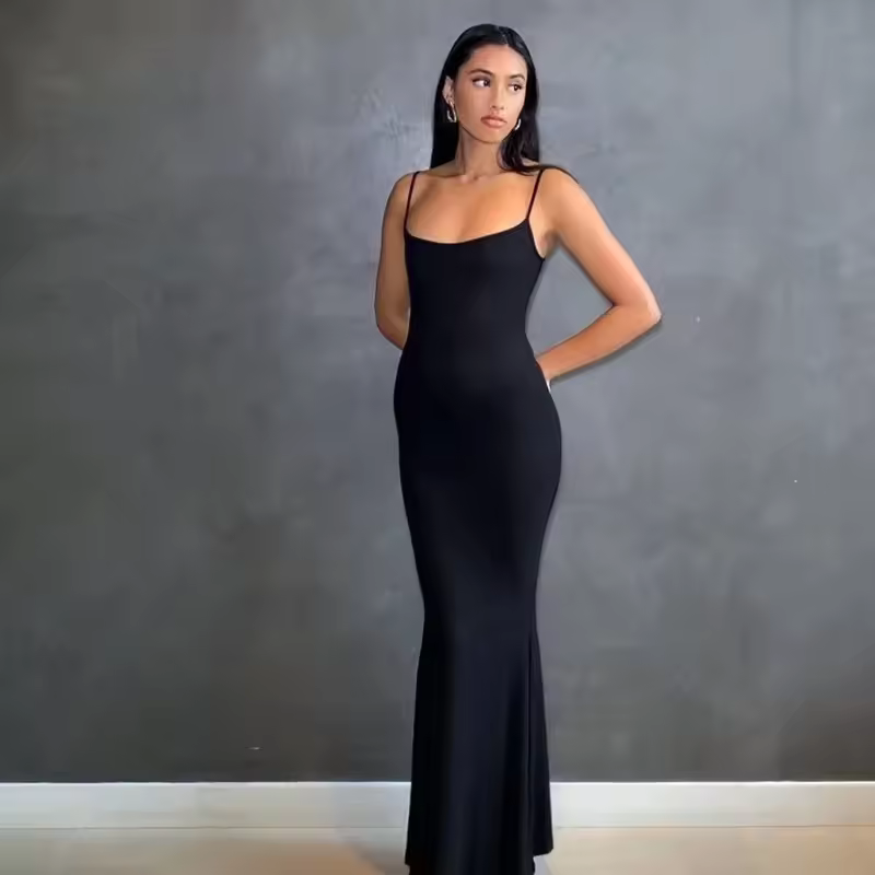 Fishtail Backless Spaghetti Strap Sleeveless Solid Robe Vestidos Dresses