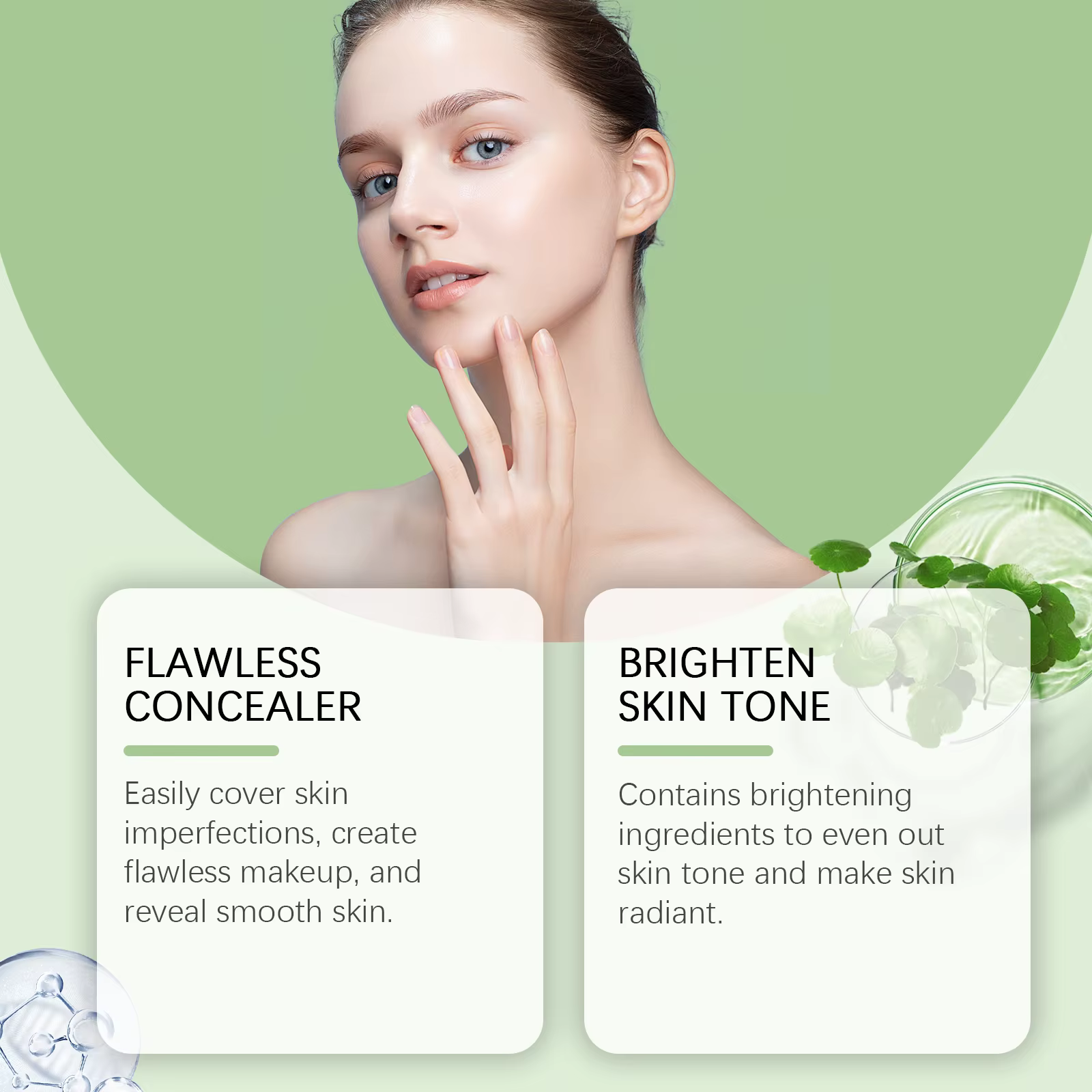 1.Centella cc cream is moisturizing and oil-controlling, texture is thin, breathable, and can hide pores, evenly concealing effectively covers the skin and creates a beautiful, natural and glowing appearance.
