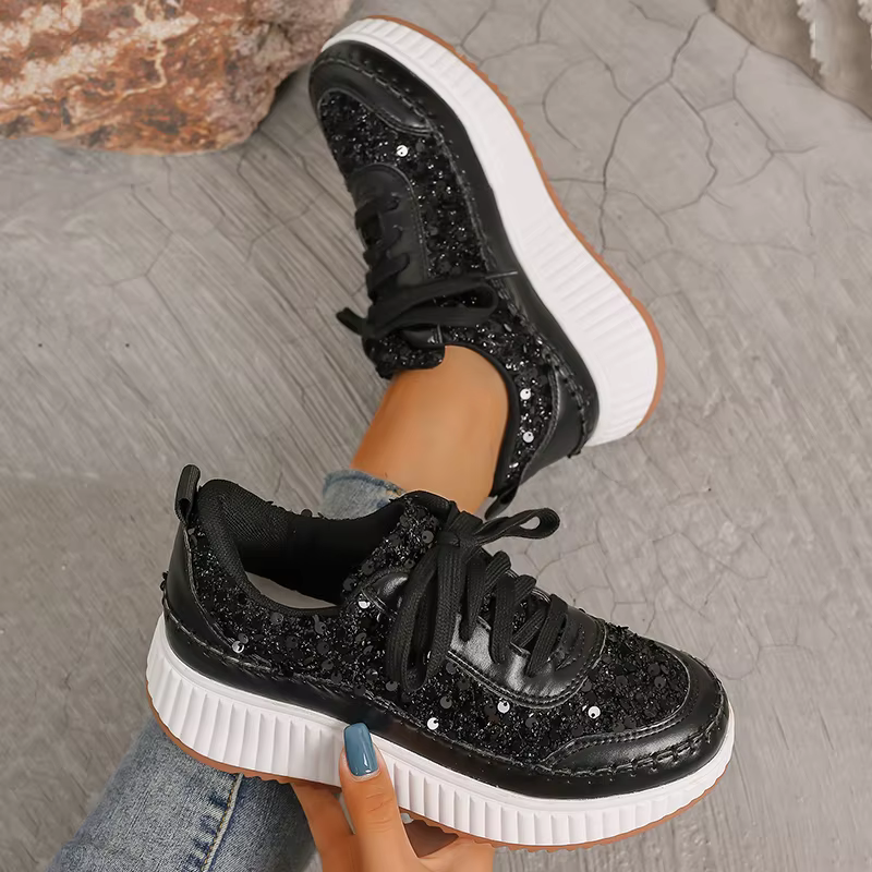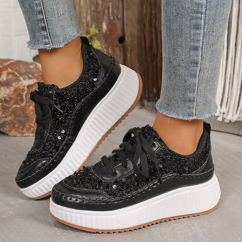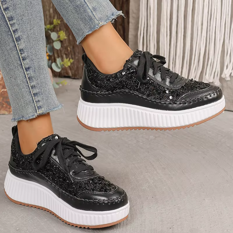 Glitter Lace Up Plus Size Thick Bottom Walking Platform Sneakers Sports Shoes