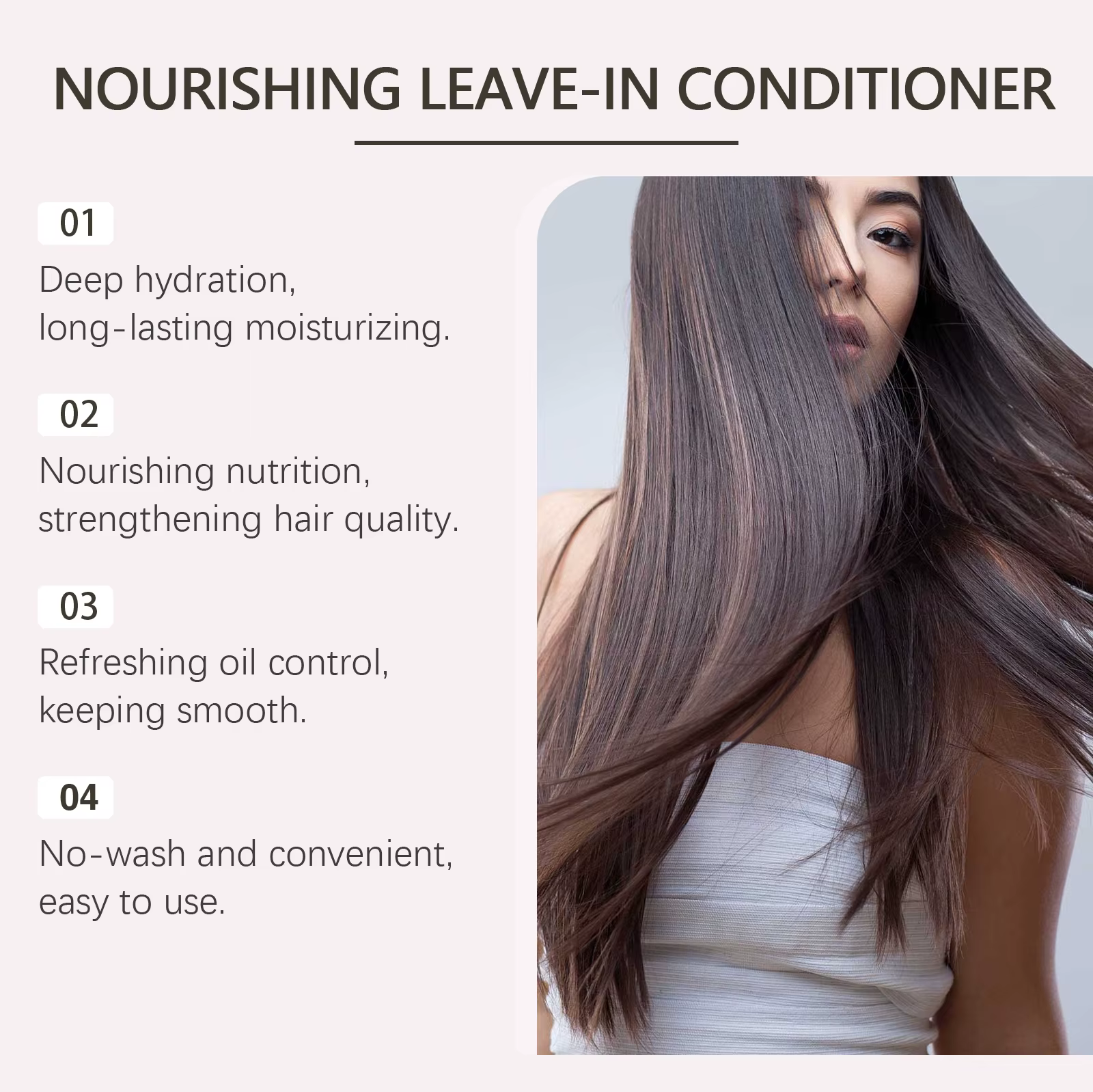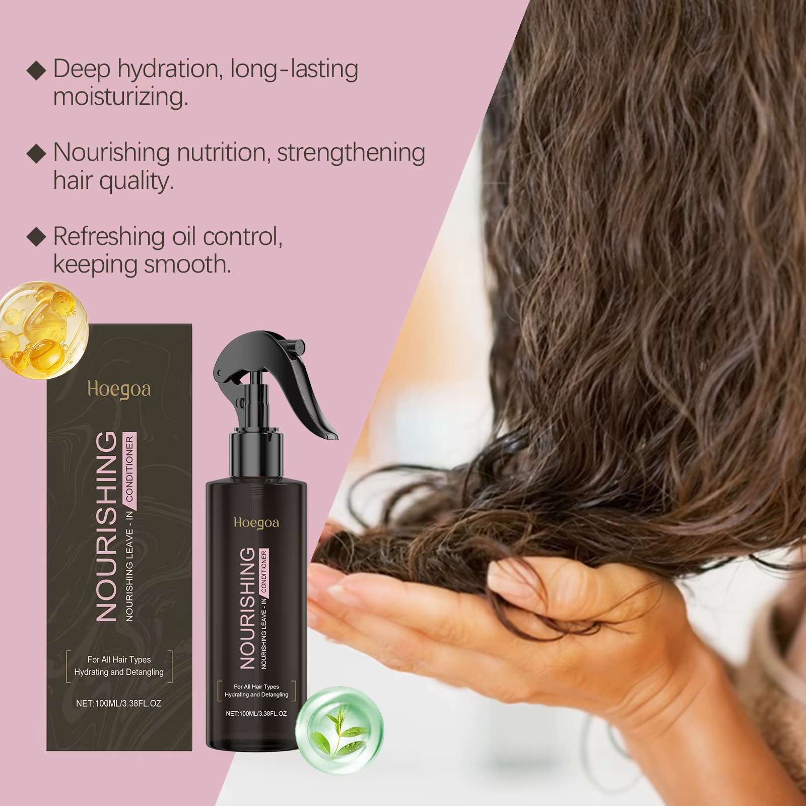 4.Lightweight formula: Despite its nourishing benefits, our spray boasts a lightweight formula that won’t weigh down your hair, allowing for natural movement and bounce.