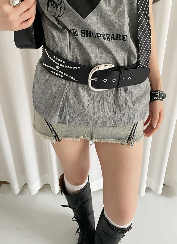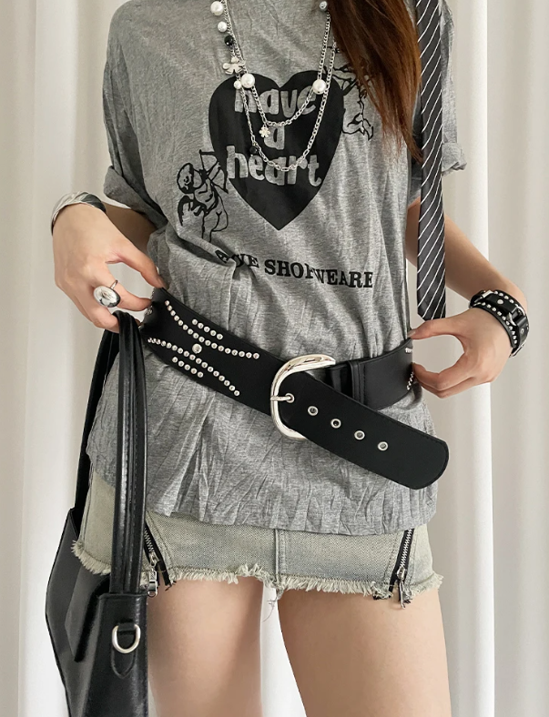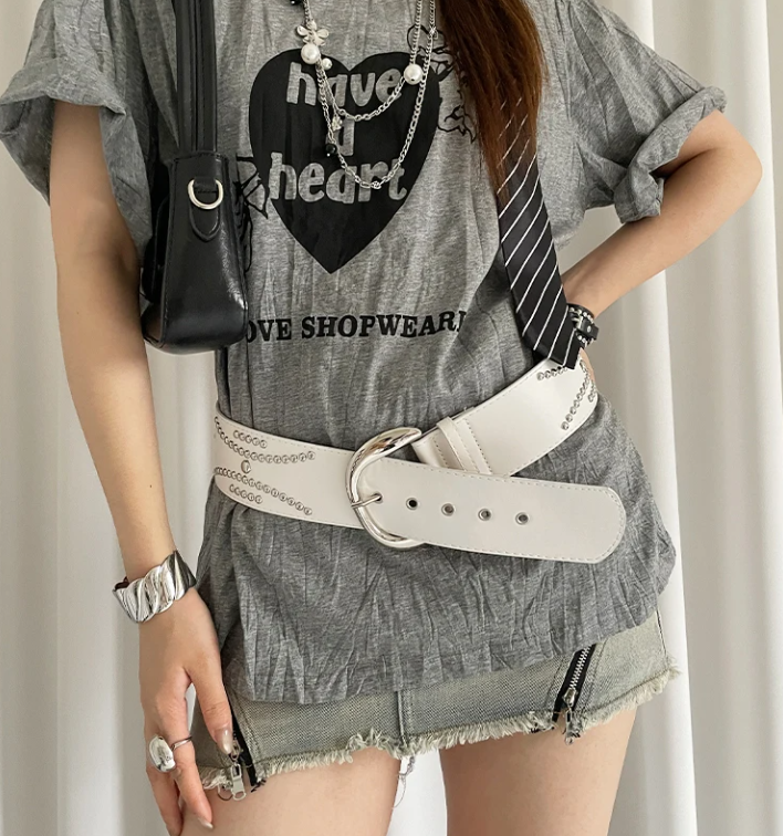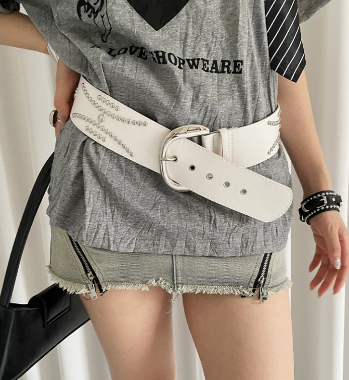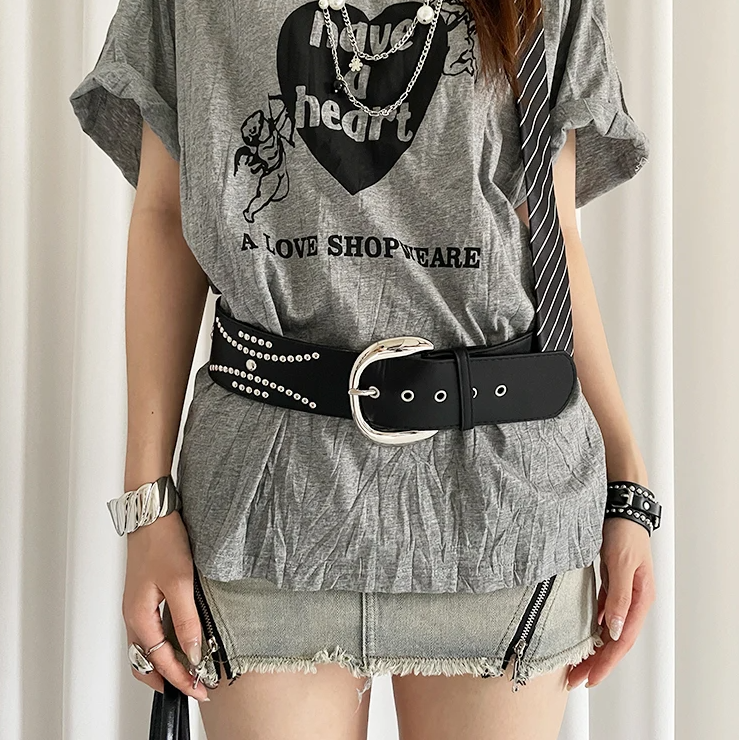 Heavy-Duty Rivet Wide With A Sense Of Design A Waist-Cinching Belt