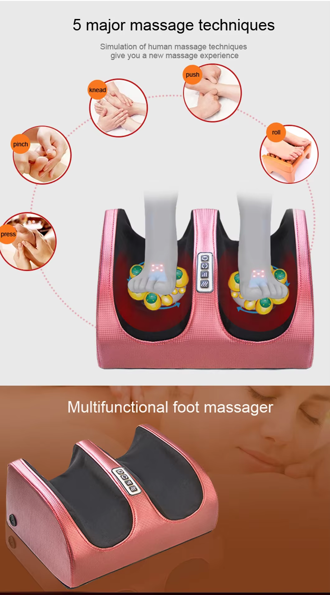 1.Built-in 12pcs 3D massage balls in total will provide life-simulation kneading and rubbing experience to effectively relieve suffering pain and aches, release stress and pressure from foot, calf, ankle and leg muscle.
