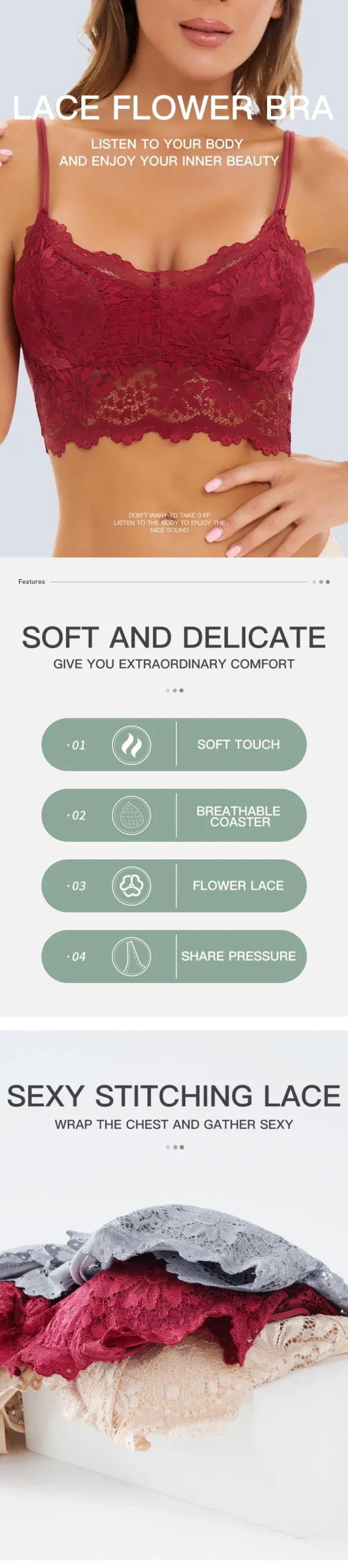 - Bra Style : push up,PADDED
