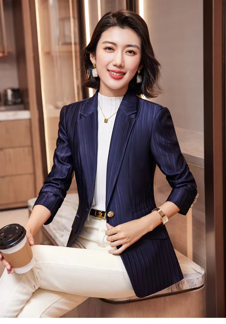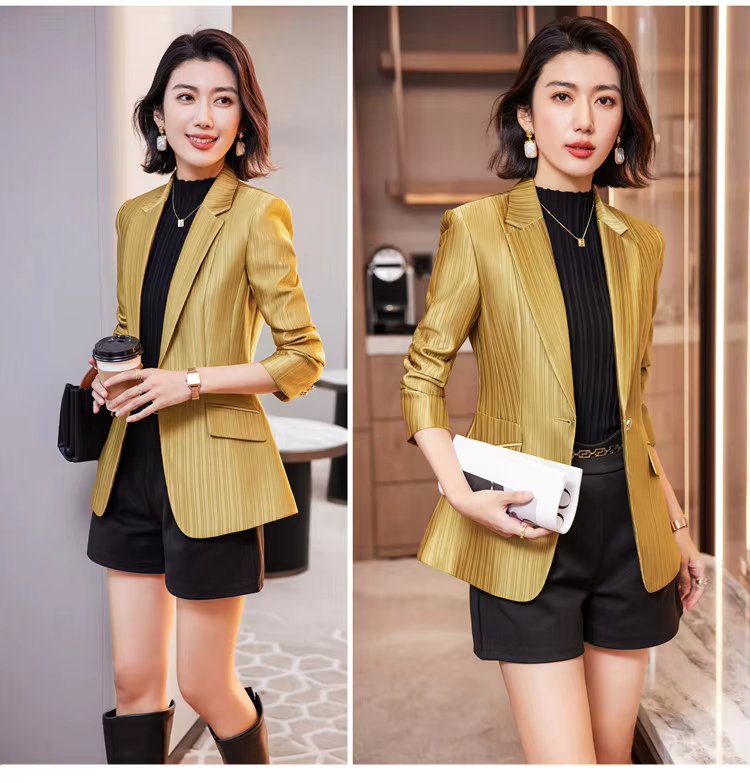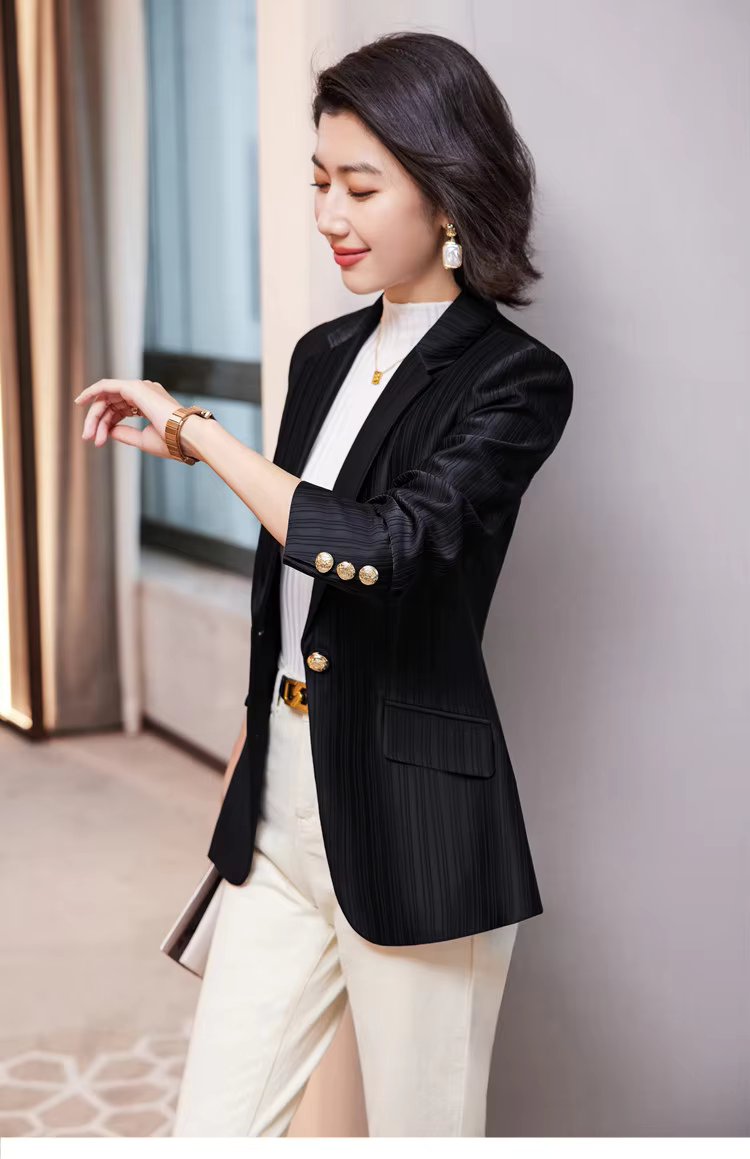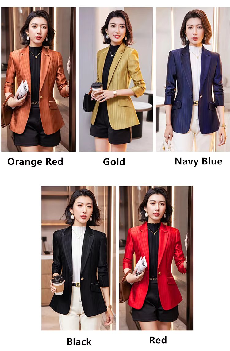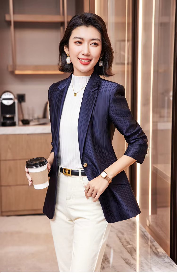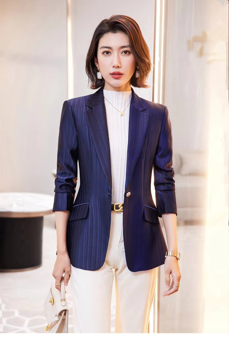 Luxury Bright Striped Long Sleeve Elegant Single Golden Button Formal Suits