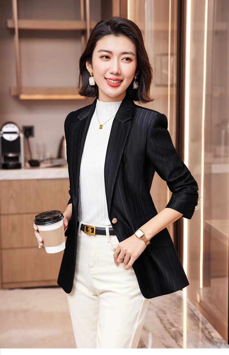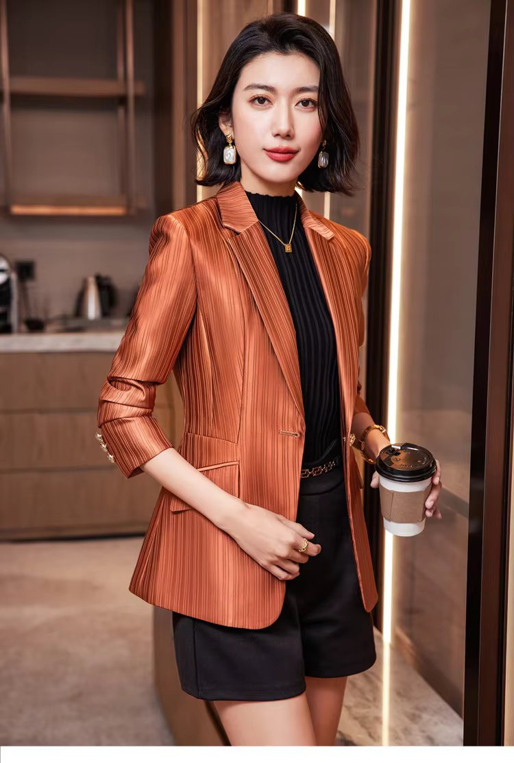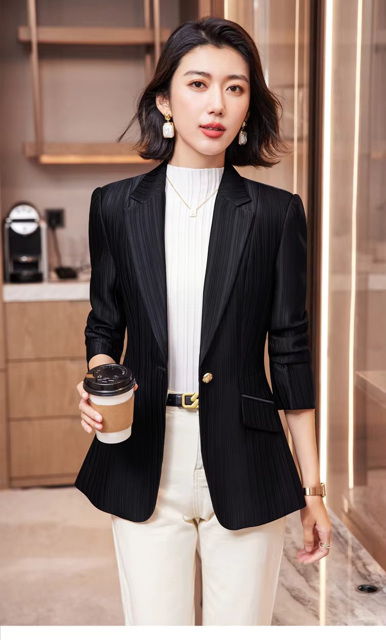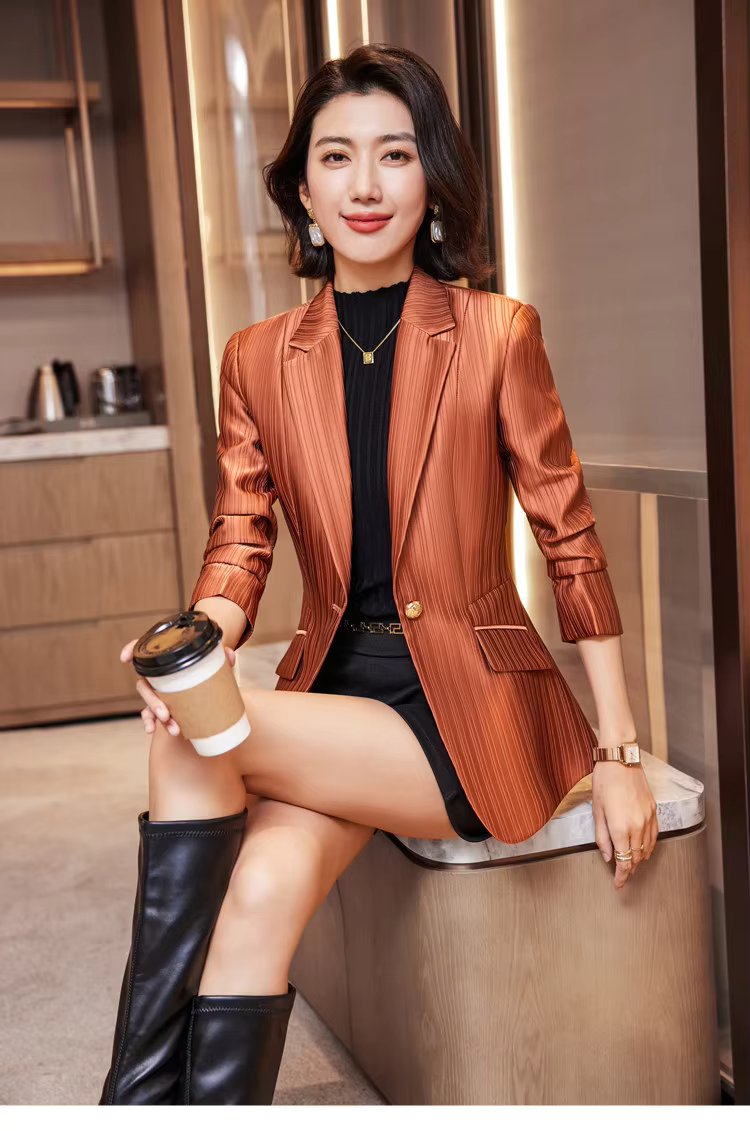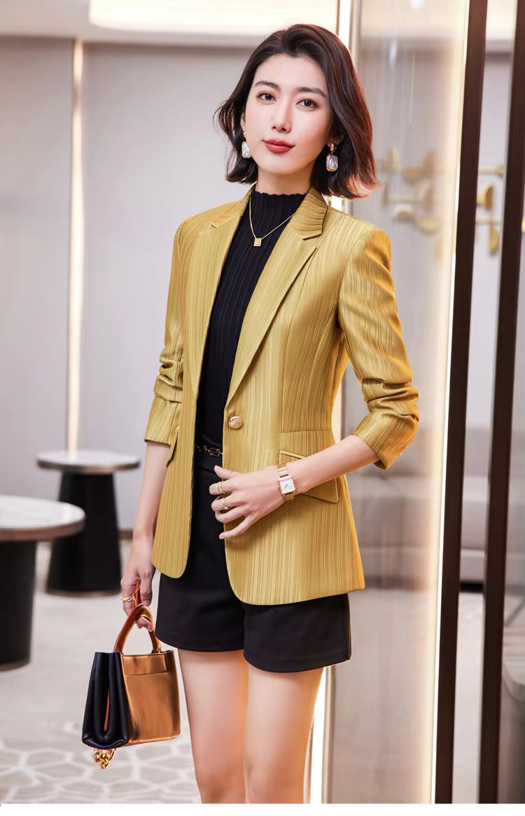 Luxury Bright Striped Long Sleeve Elegant Single Golden Button Formal Suits