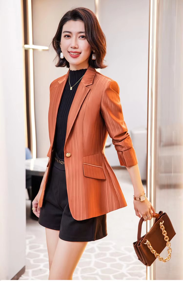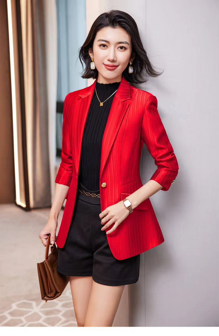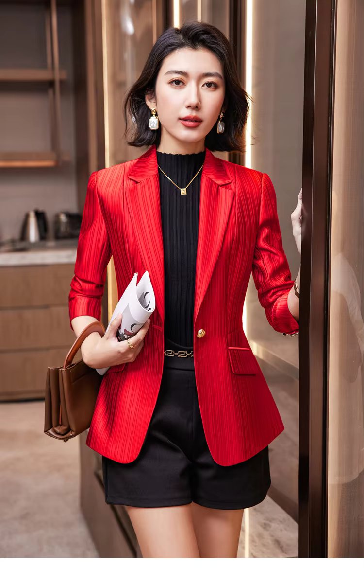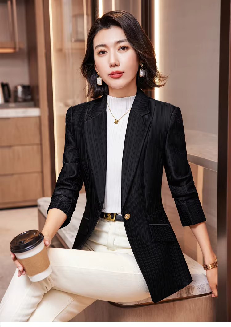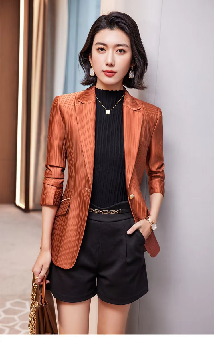 Luxury Bright Striped Long Sleeve Elegant Single Golden Button Formal Suits