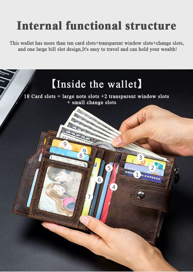 - Interior : Zipper Poucht,Coin Pocket,Note Compartment,Photo Holder,Card Holder