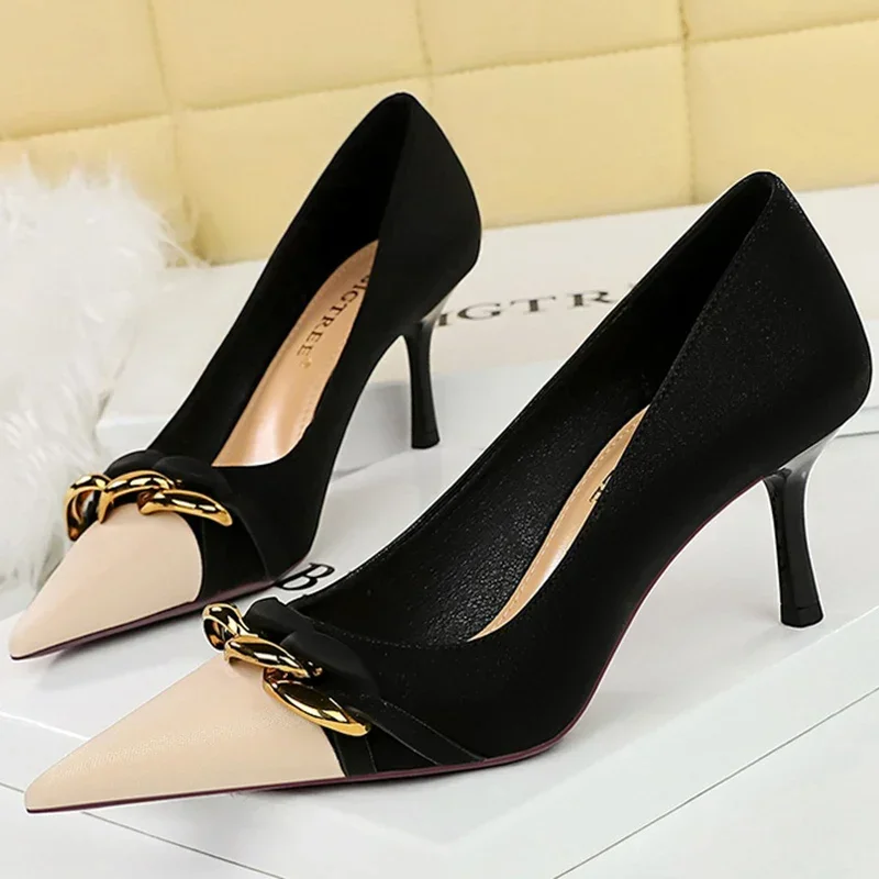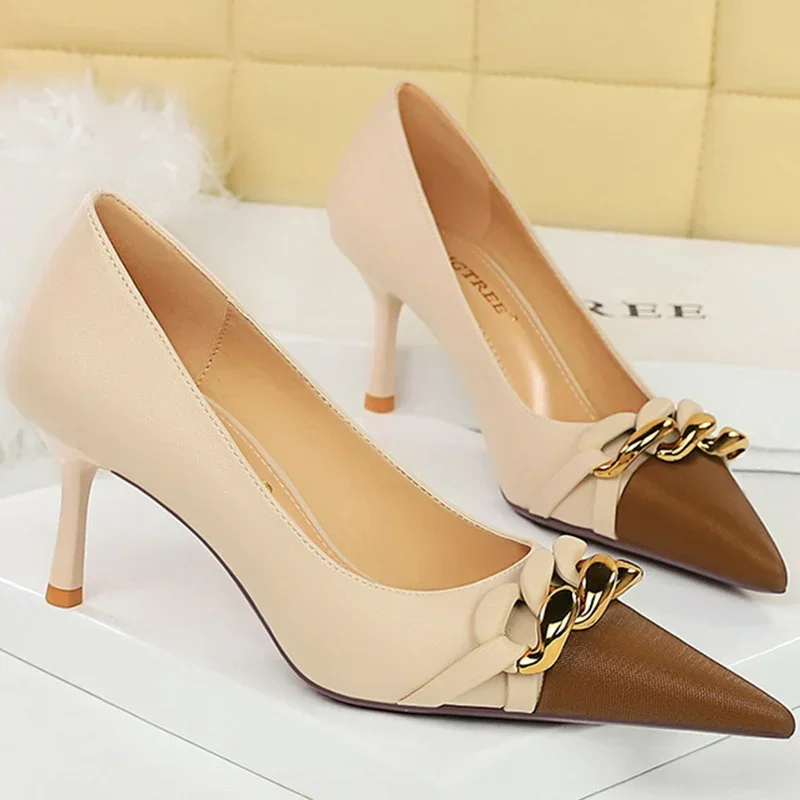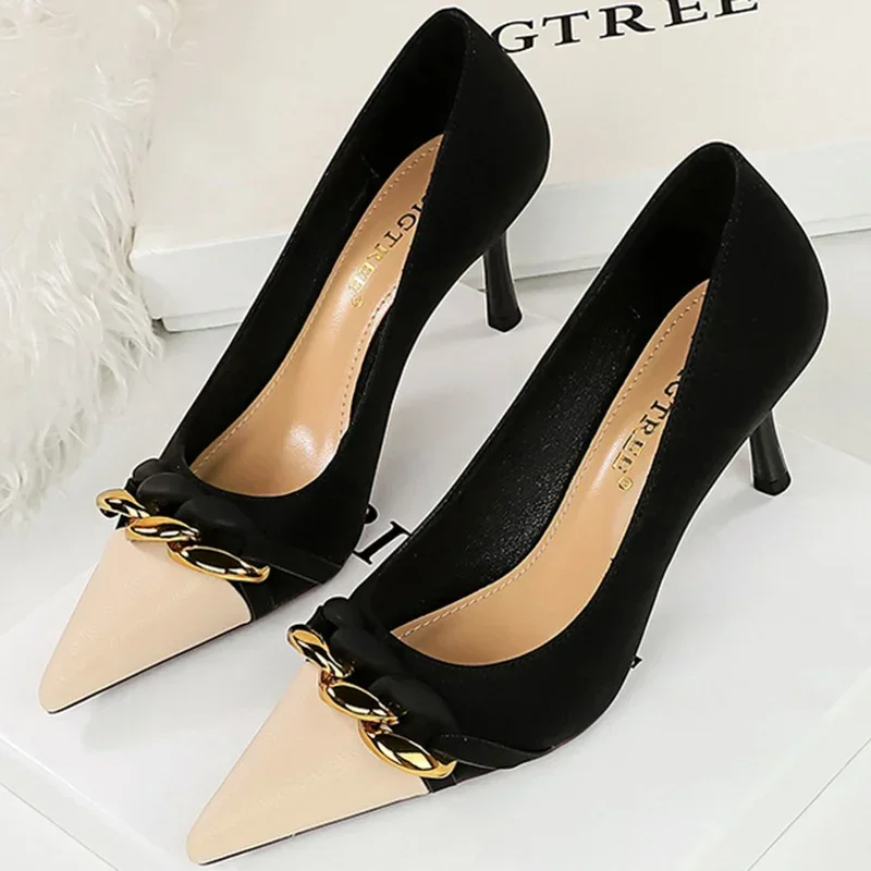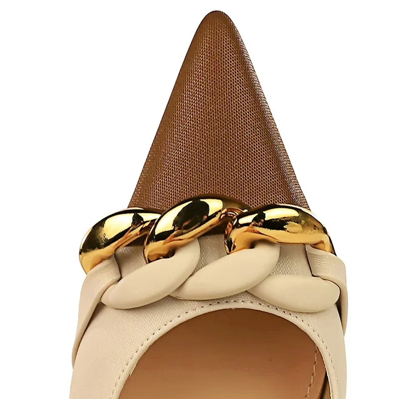 Metal Chain Banquet Pumps Pointed Toe Low Heels Formal Occasion Prom Shoes
