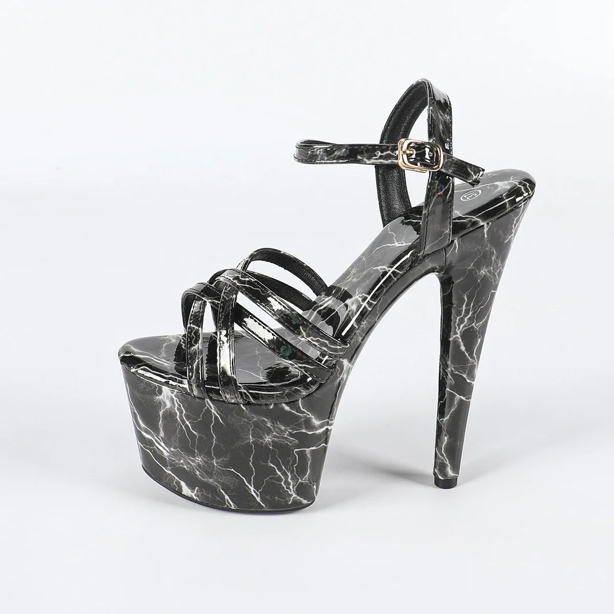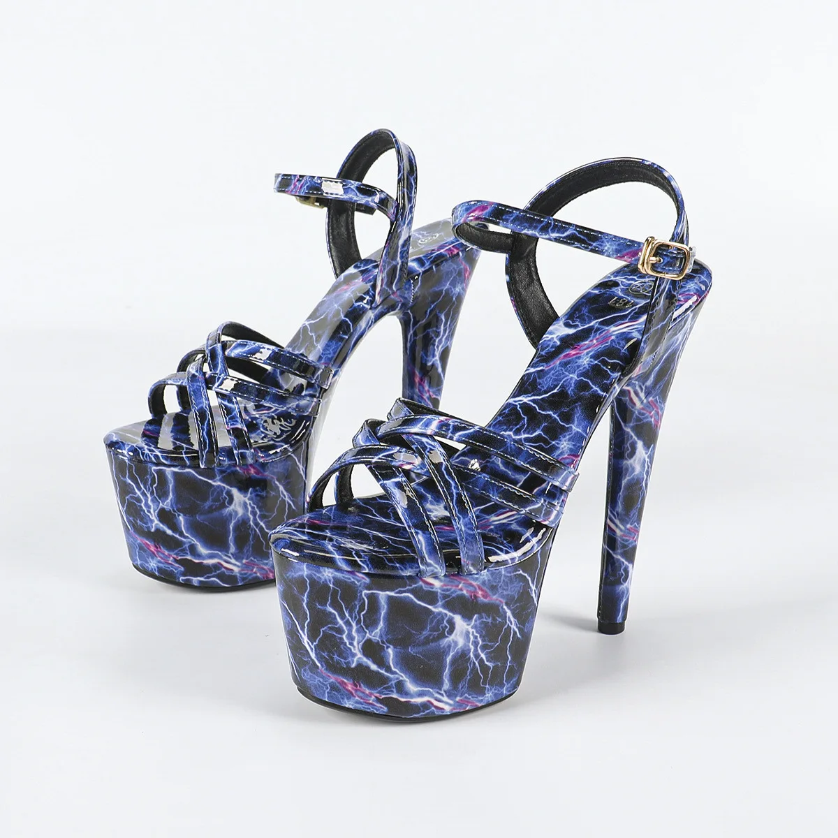 Mixed Color Stripper Model Catwalk Show Peep Toe High Heels Sandals