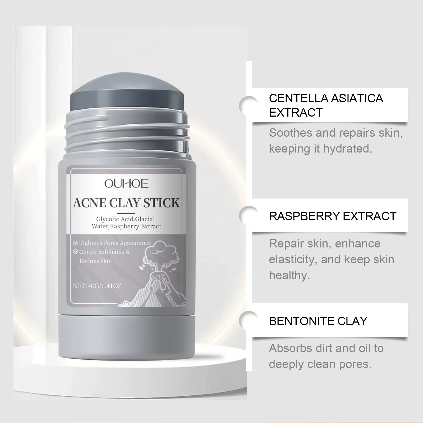 2.【Brighten Skin】Cleansing pore clay mask stick contains centella extract, raspberry extract, glycolic acid, the texture of the mud mask is fine, it can brighten the complexion, deeply clean the skin dirt.