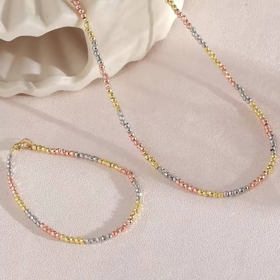 Multicolour Metal Beaded Necklaces Bracelets High Quality Handmade Jewelry Set